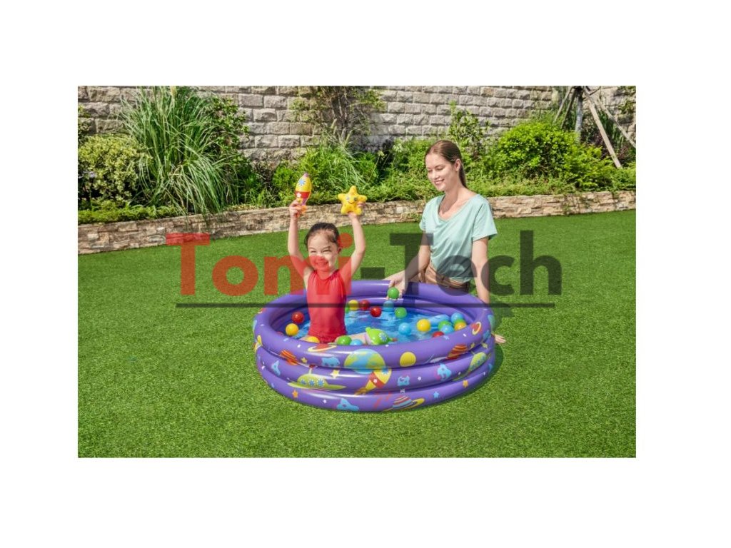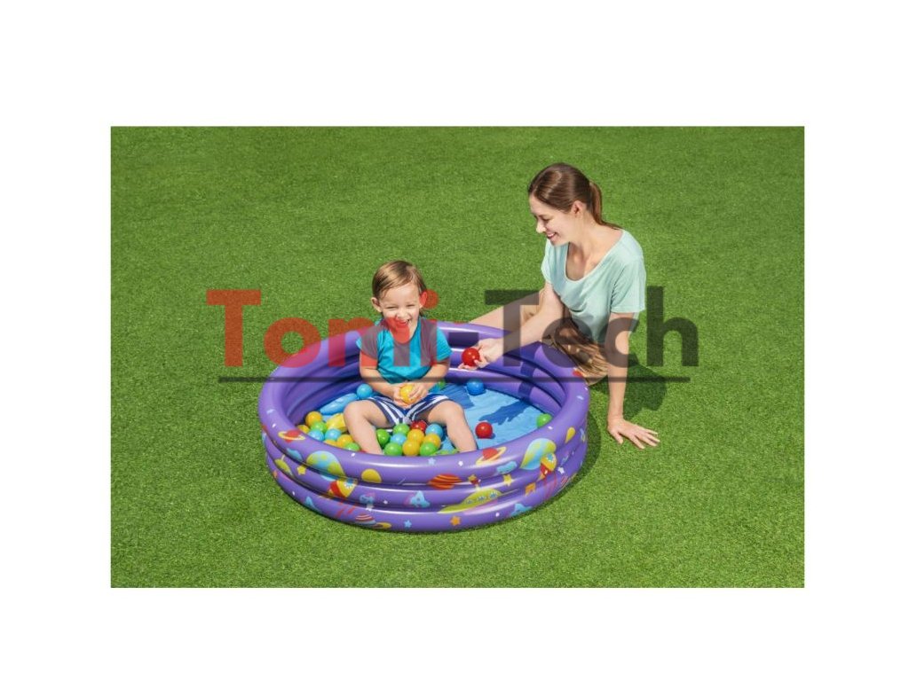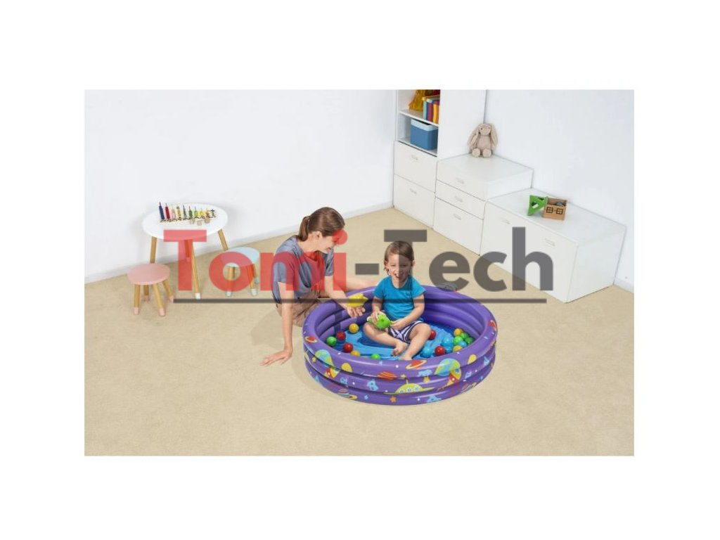 Predstavujeme fantastický bazén s grafickým priestorovým vzorom, ktorý je možné naplniť suchými loptičkami. Bazén má tri nafukovacie okraje, ktoré možno rýchlo nafúknuť. Vesmírny bazén je možné použiť v interiéri aj exteriéri naplnením vodou. Hra vo vesmírnom bazéne bude fantastickým spôsobom, ako stráviť voľný čas vonku.