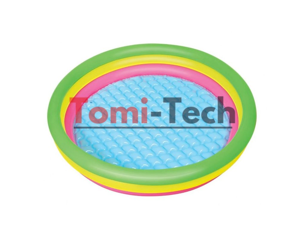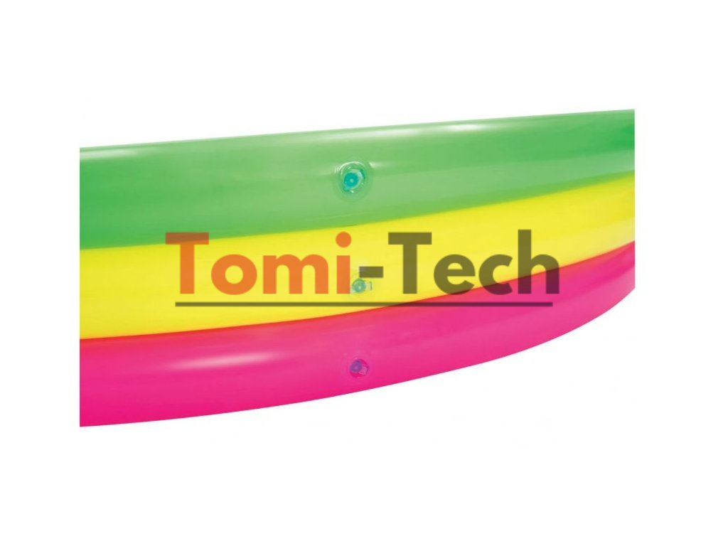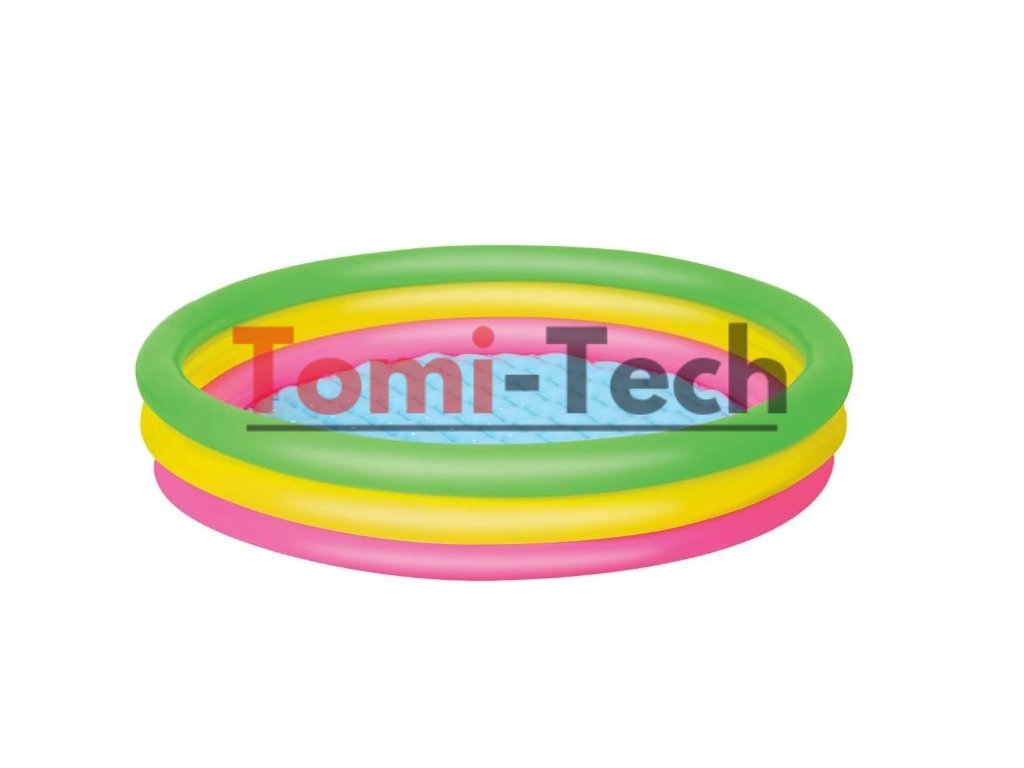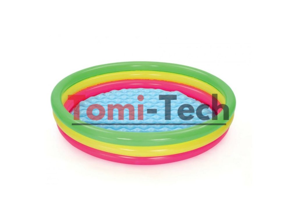 Charakteristika: Rozmery bazéna 152 cm x 30 cm,objem 211 litrov,vek od 2 rokov,mäkké dno,farby dúhy,tri nafukovacie kruhy, mäkké fúkané dno, pohodlné steny, ktoré slúžia ako operadlo