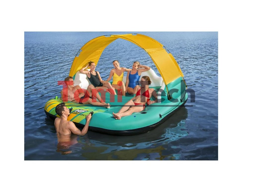 Plávajúci ostrov je lehátko vytvorené na oddych a relaxáciu so svojimi najbližšími. Nadrozmerná plocha je dostatočne veľká, aby sa na nej pohodlne zmestilo až päť ľudí.