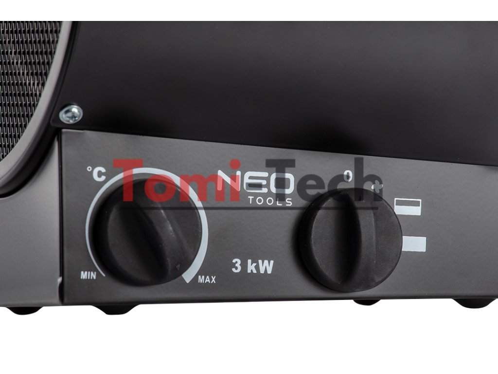 Priemyselný elektrický ohrievač 3 kW, vykurovacie teleso z nehrdzavejúcej ocele, nastaviteľný termostat, ochrana proti prehriatiu, s ventilátorom, izolovaná rukoväť, prietok vzduchu 291 m3/hDodatočné parametre