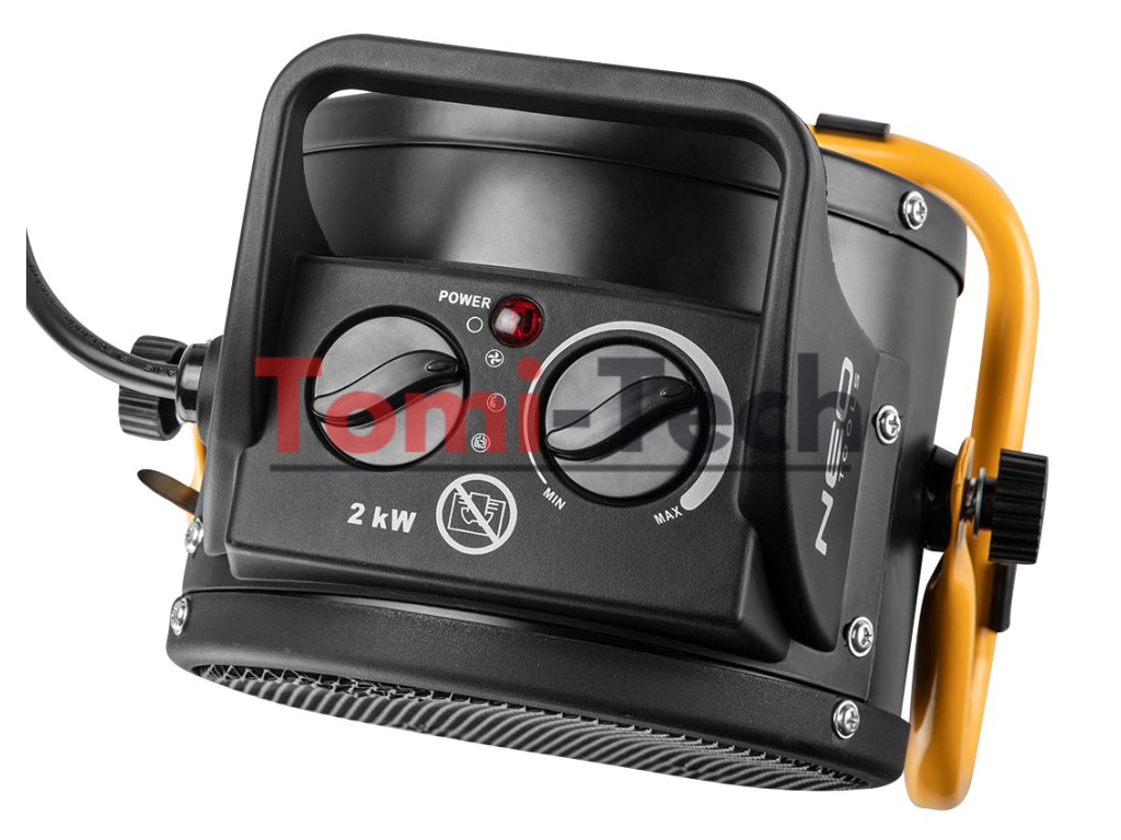 Elektrický keramický ohrievač PTC, výkon 2 kW, s termostatom a regulátorom výkonu, s ventilátorom, nízka hlučnosť, nízka spotreba energie, nastaviteľný uhol, prietok vzduchu 197 m3/hDodatočné parametre