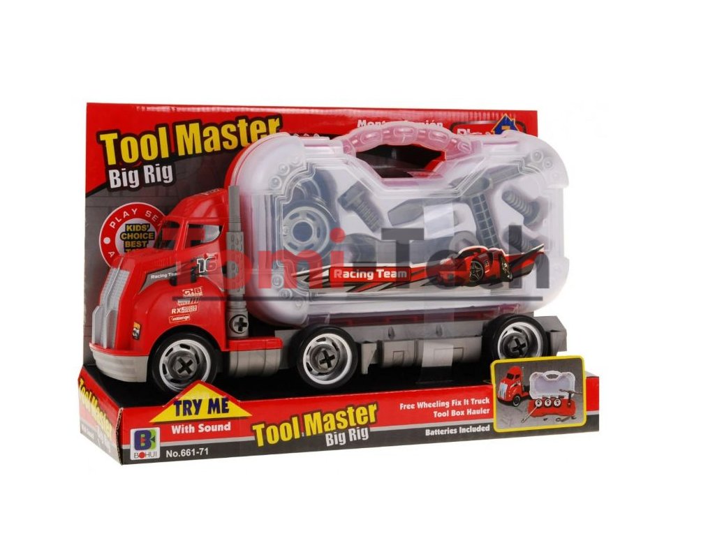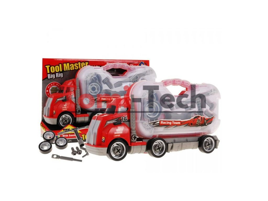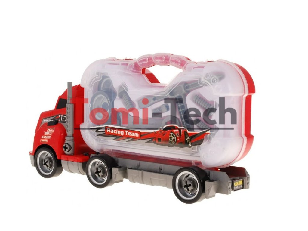 Tahle unikátna sada má veľké množstvo prvkov, pevné spracovanie a pozornosť detailu s ďalšími výhodami tejto vynikajúcej hračky.Táto fantastická kombinácia dielne a automobilu robí set ideálne vzdelávacie hračky, umožňuje dieťaťu rozvíjať zručnosti pri výbere tvarov, rozlišovanie farieb a rozvíjanie predstavivosti. Skvelá sada pre každého mladého mechanika! Jednotlivé prvky dielne sú umiestnené v praktickom, ale aj pohodlnom kufra umiestnenom na návesu kamióna.