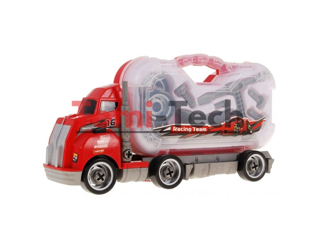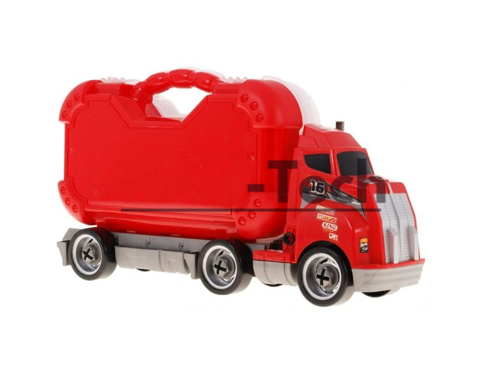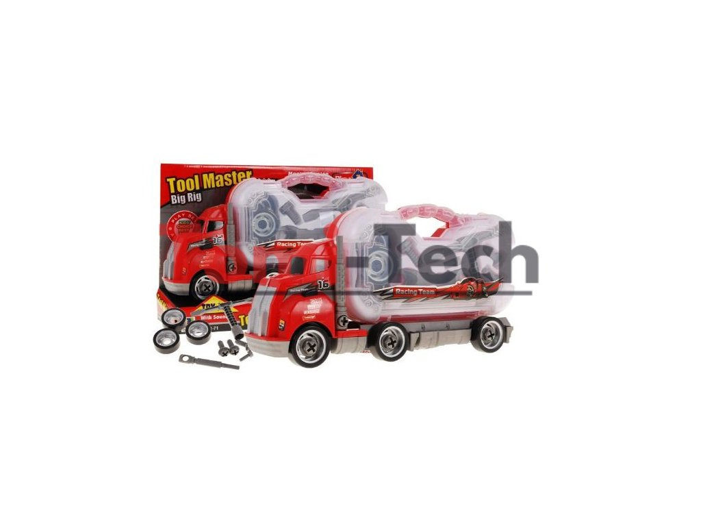 V sade sa nachádza:červený nákladiak,kufrík so skrutkami, náradím a náhradnými kolesami