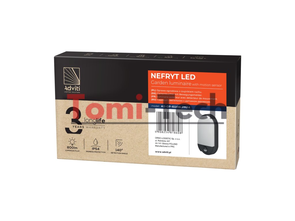 NEFRYT LED 10W, záhradná lampa s pohybovým senzorom, 800lm, IP54, 4000K, čierna
