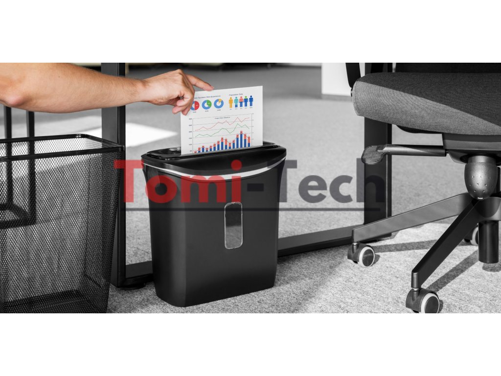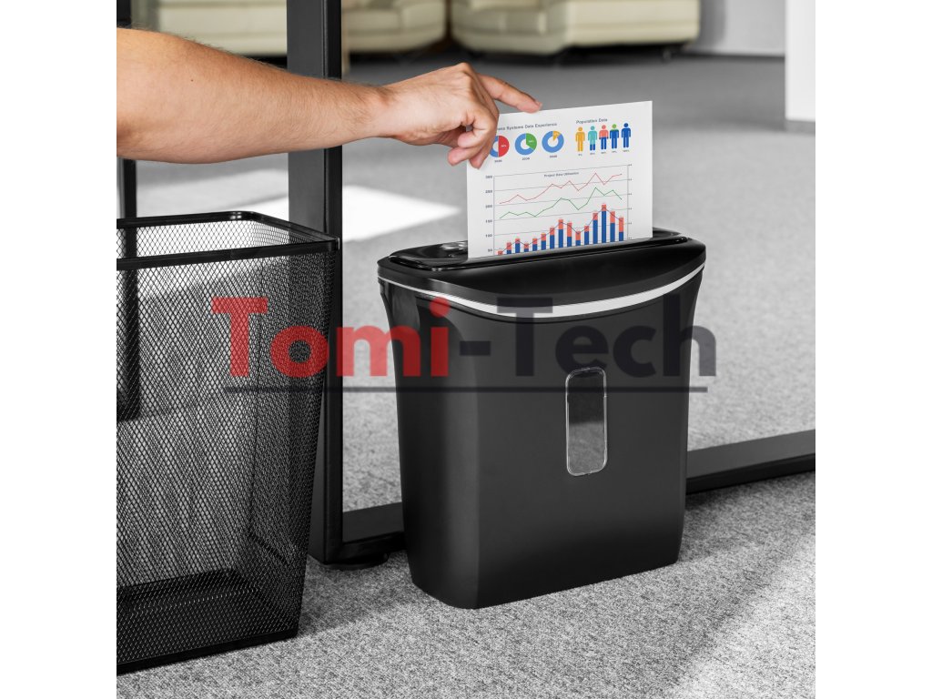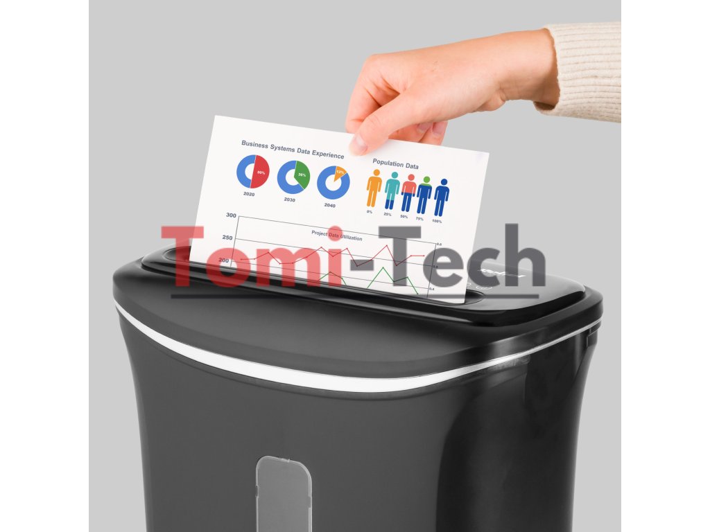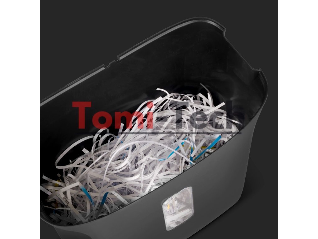 Dôležitou vlastnosťou skartovača je 12-litrový odpadkový kôš, ktorého kapacita robí zariadenie ideálnym pre domáce aj kancelárske použitie.