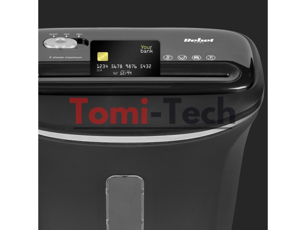 Skartovač Rebel skartuje 6 listov papiera naraz, čo vám umožní rýchlo sa zbaviť veľkého množstva nepotrebného dokumenty. Okrem toho špeciálne navrhnutý mechanizmus skartuje dokumenty na kúsky s rozmermi 4 x 30 mm, čím zabezpečuje, že zničené údaje sa už znovu nevytvoria.