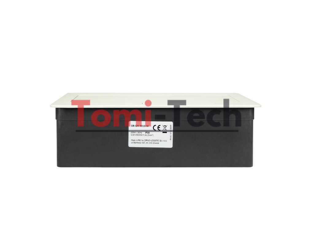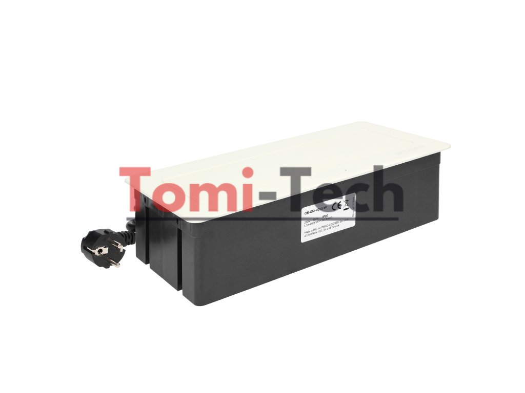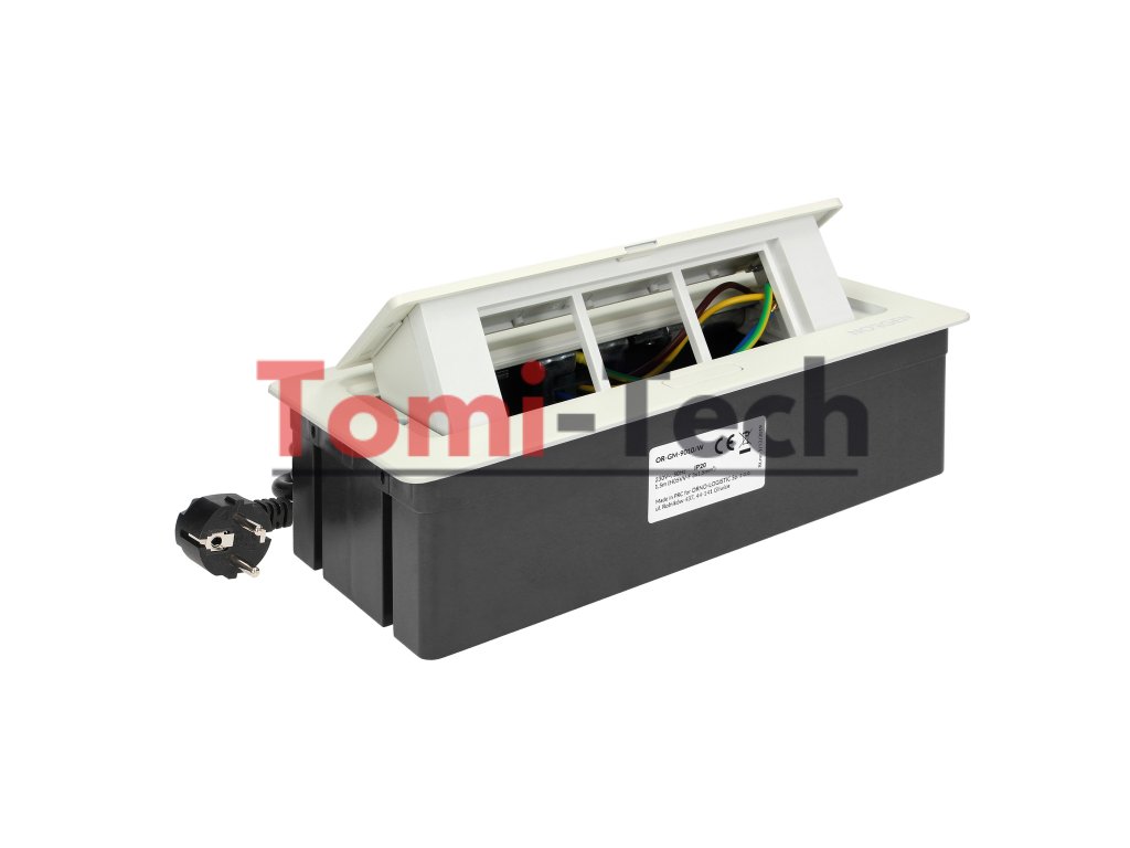 Nábytková kazeta NOEN zapustená do dosky stola s integrovaným PVC rámom pre modulárne zásuvky 3 x 45x45mm alebo 6 x 22,5x45mm, kábel 1,5m, biela