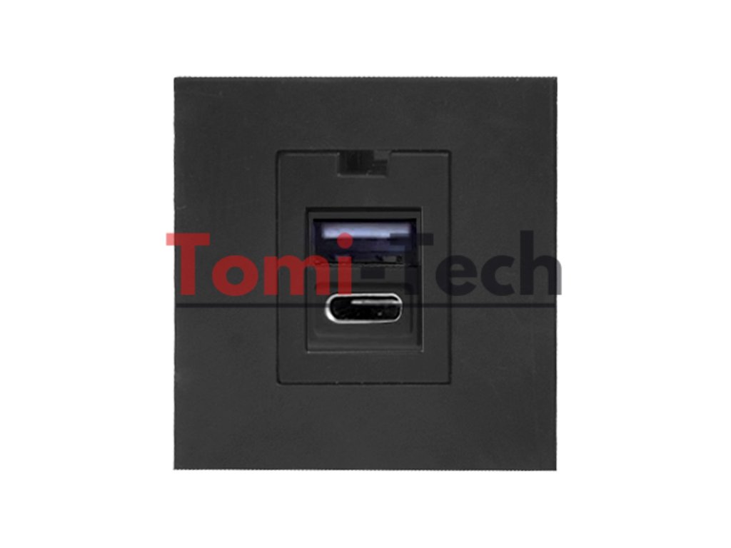 NOEN USB x 2 – typ A + C, modulárny duálny port 45x45 mm s USB nabíjačkou, 2,1 A 5 V DC, čierny