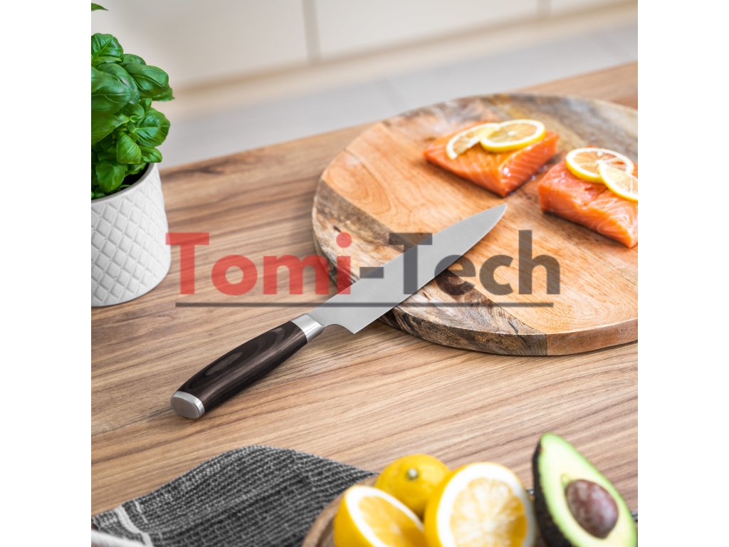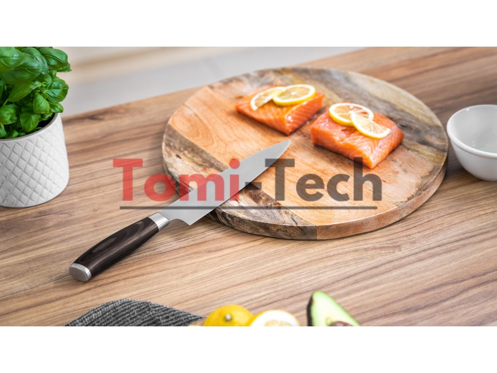 Radi prekvapujete svoju rodinu a priateľov lahodnými jedlami? Dobrý kuchársky nôž je vo vašej kuchyni absolútnou nevyhnutnosťou. Tento typ kuchynského noža sa vyznačuje dlhou, širokou a dokonale tvarovanou čepeľou, vďaka čomu je veľmi všestranný. Ľahko s ním krájate mäso, ryby, zeleninu a bylinky.
