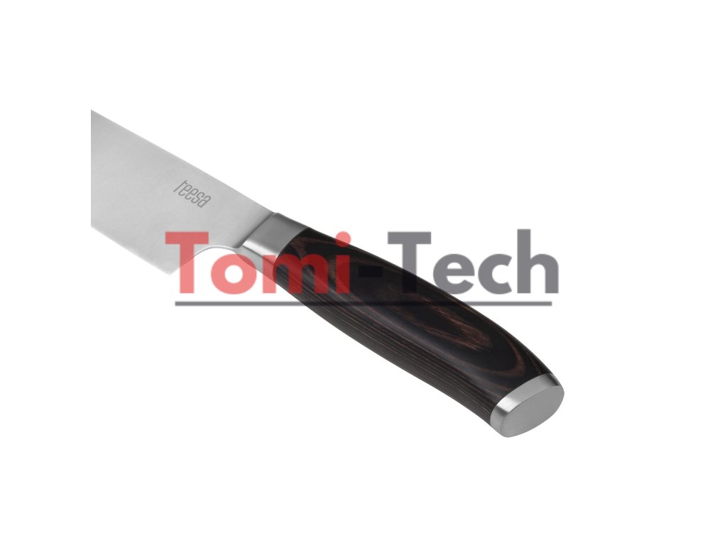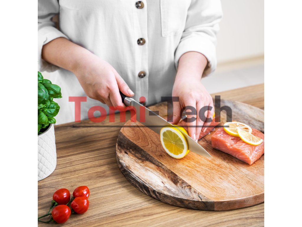 Šéfkuchársky nôž Teesa je vyrobený z vysoko kvalitnej nehrdzavejúcej ocele, vďaka čomu je veľmi odolný, ostrý a odolný voči korózii. Môžete si byť istí, že vám tento doplnok bude slúžiť dlhé roky. Venujte tiež pozornosť ergonomickej rukoväti, vďaka ktorej sa nôž veľmi pohodlne používa a bezpečne padne do ruky.