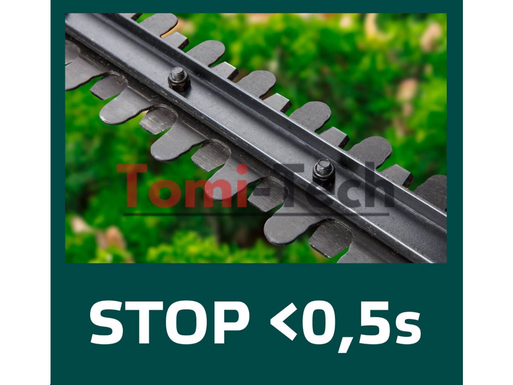 Nožnice na živý plot 600 W, maximálna rýchlosť 1700 min-1, šírka rezu 450 mm, dĺžka žacej lišty 510 mm, hmotnosť 2,45 kg, príslušenstvo: kryt žacej lišty, chránič ruky, skrutkyDodatočné parametre