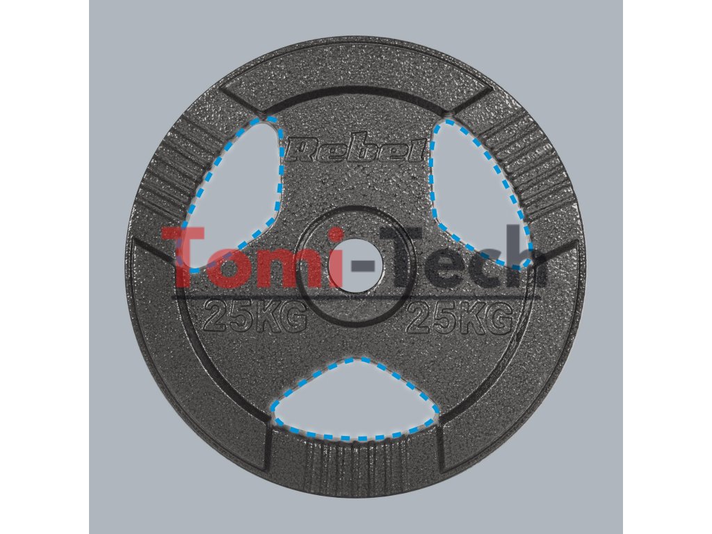 Liatinová olympijská záťažová doska 25kg, 51mm otvor, doska s rúčkami, REBEL ACTIVE