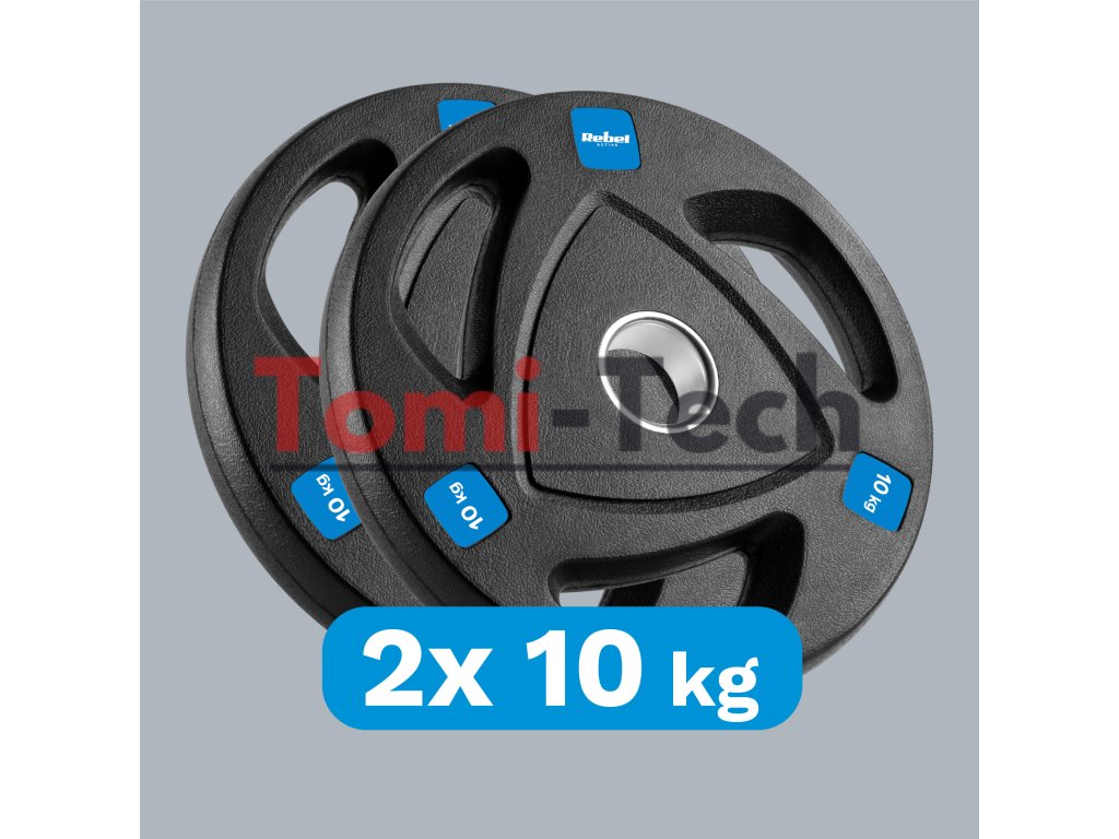 Liatinové olympijské závažia, pogumované, sada 2x10kg, otvor 51mm, REBEL ACTIVE