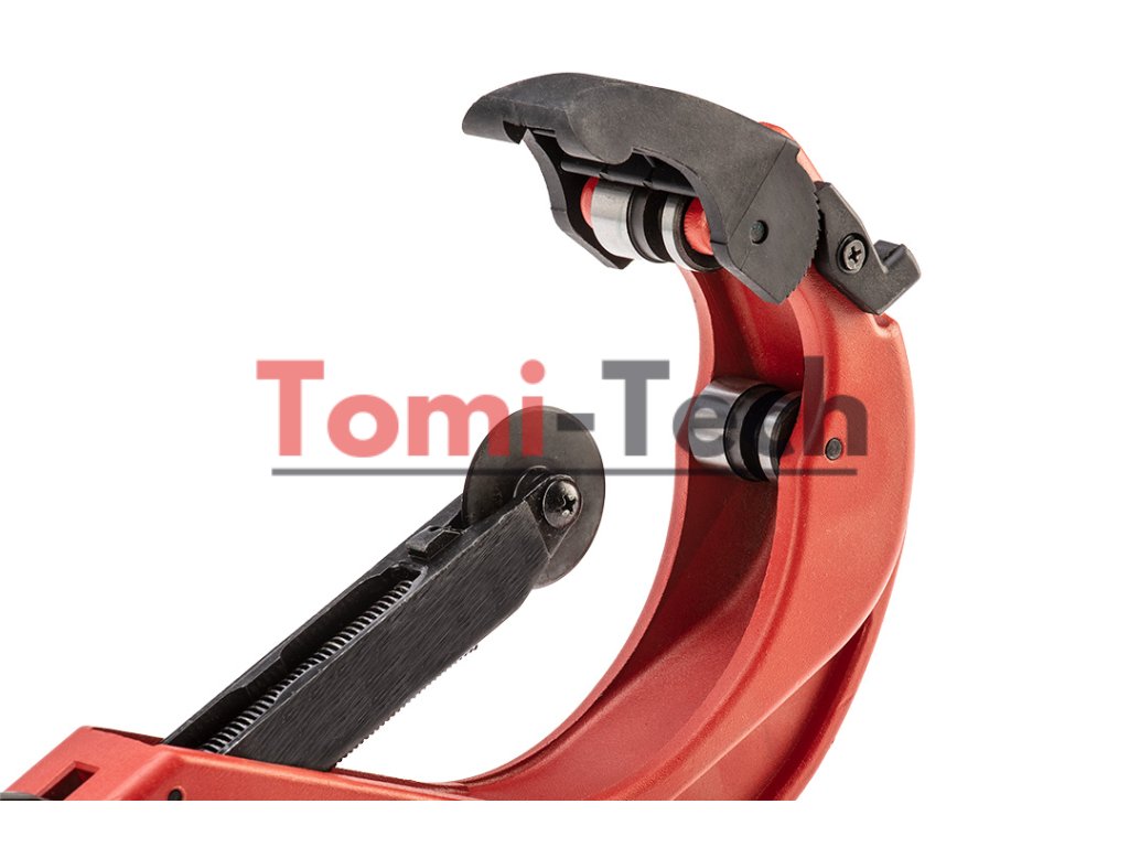 Rezačka rúrok na meď, hliník a plast, rozostup čeľustí 50 – 127 mm, mechanizmus rýchleho nastavenia veľkosti 2“ – 5“, gombík, telo z hliníkovej zliatiny, 2 vodiace valčeky, kalené oceľové rezacie kolieskoDodatočné parametre