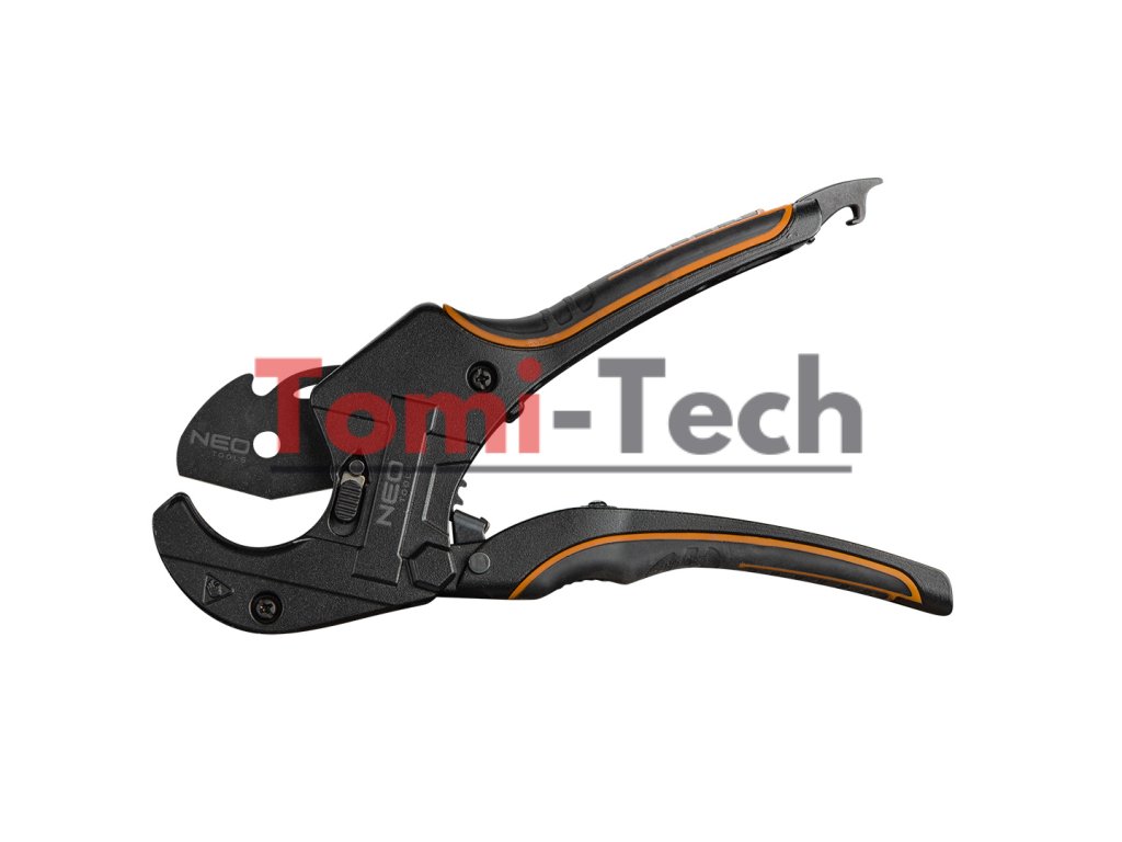 Rezačka plastových rúrok na rúrky s priemerom 0-50 mm, hliníkové telo, pogumovaná rukoväť, zámok, čepeľ SK5, vymeniteľná čepeľ, hmotnosť 490 gDodatočné parametre