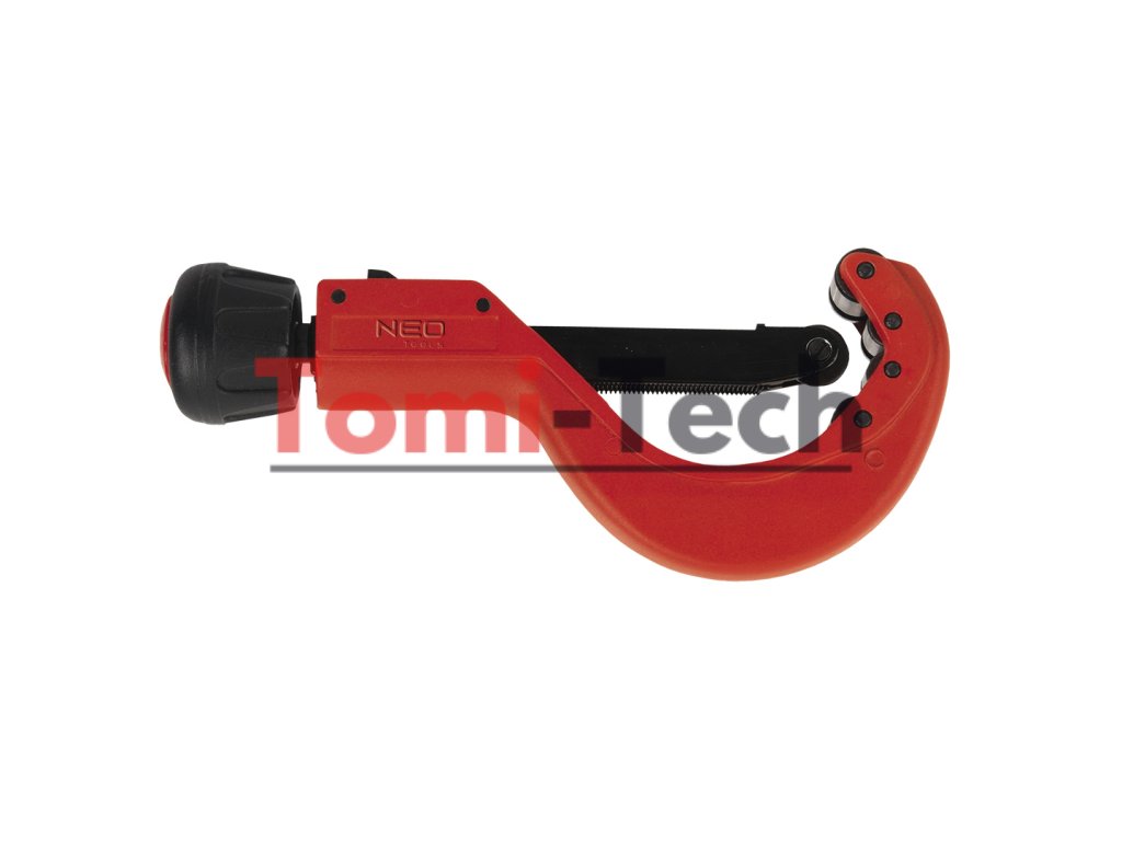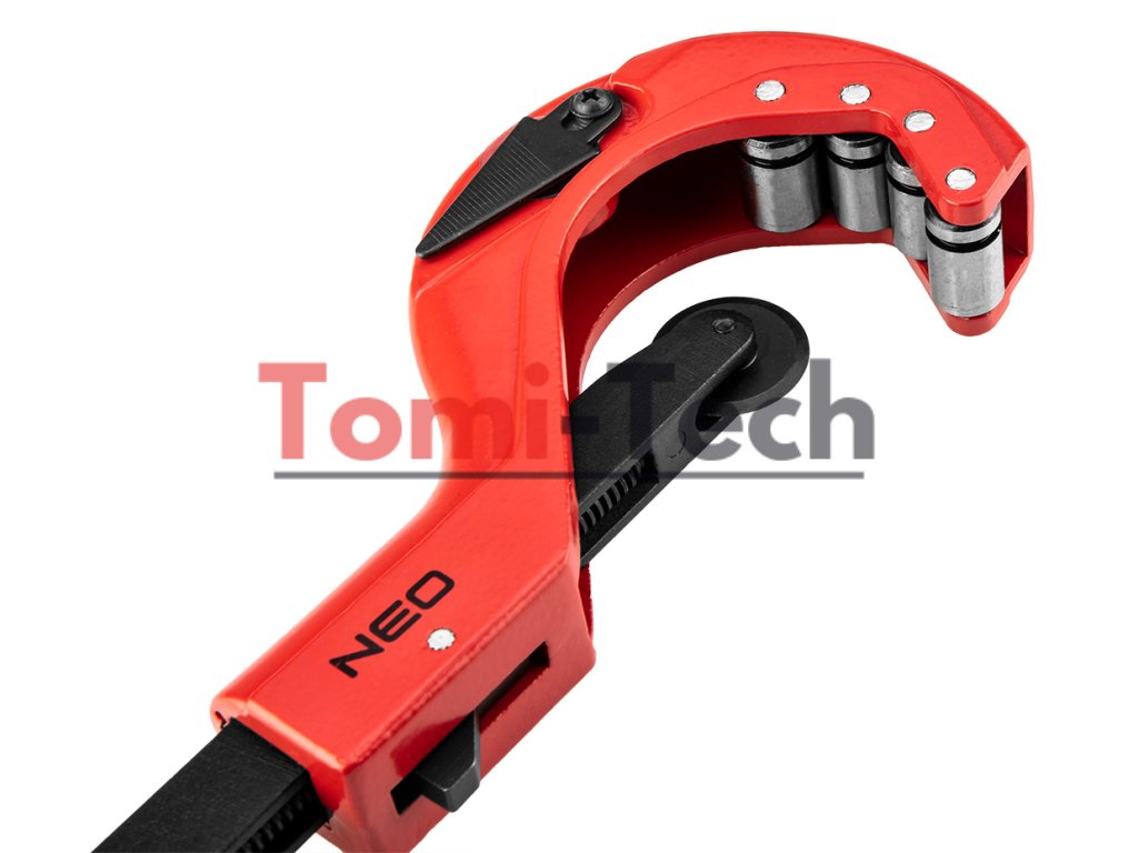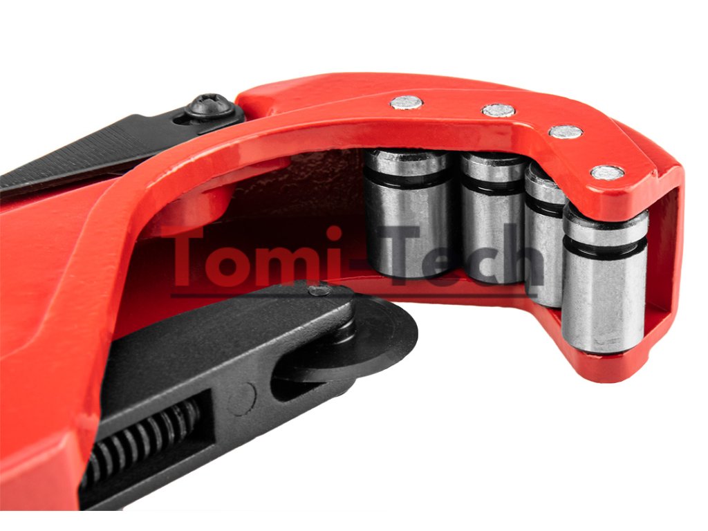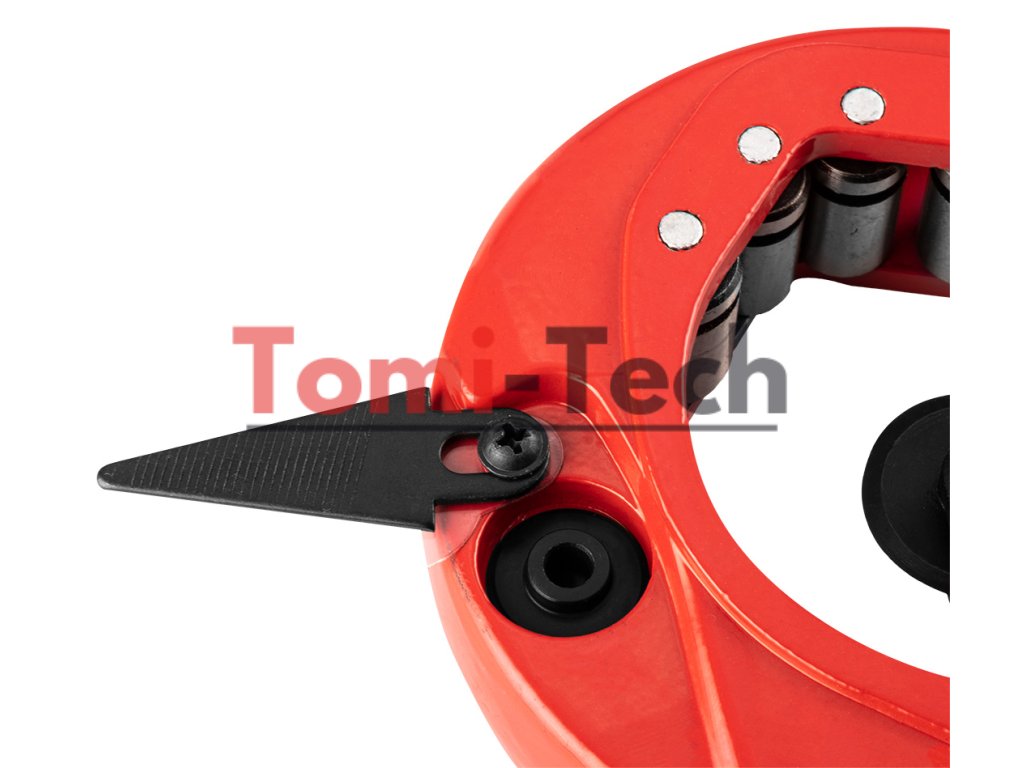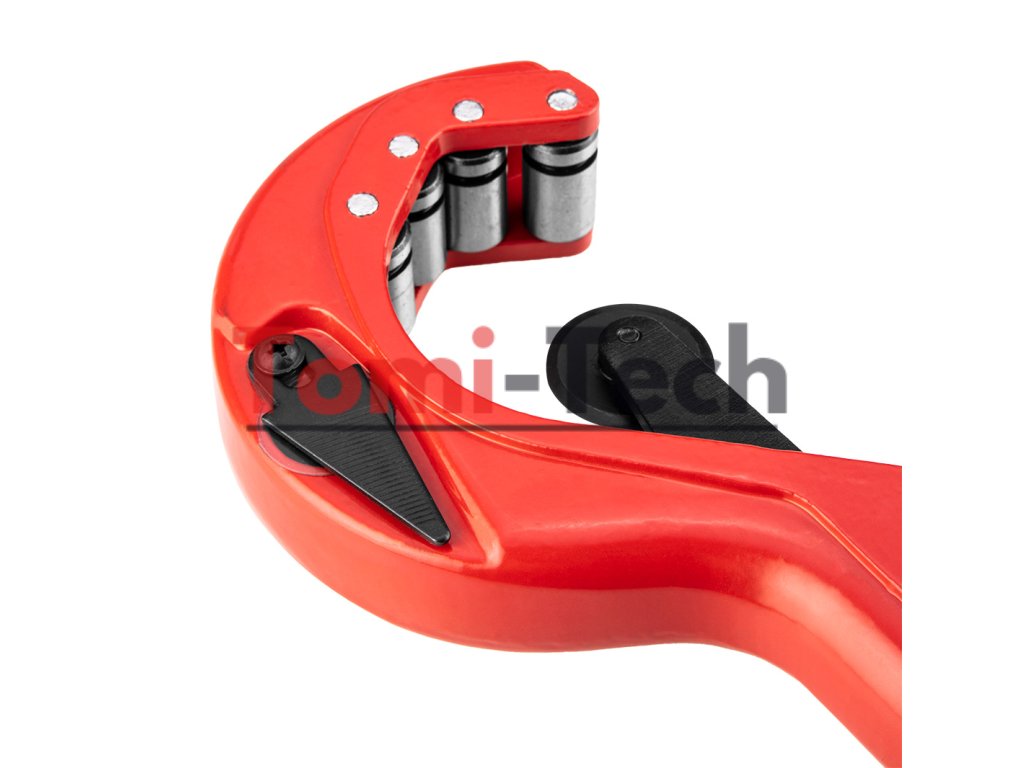 Rezačka rúrok na plastové rúrky z PVC, PE, PP, 6 - 63 mm (1/4" - 2,3, 8"), štyri vodiace valčeky, hliníkové telo, nastaviteľná skrutka, rýchlonastavovací mechanizmusDodatočné parametre
