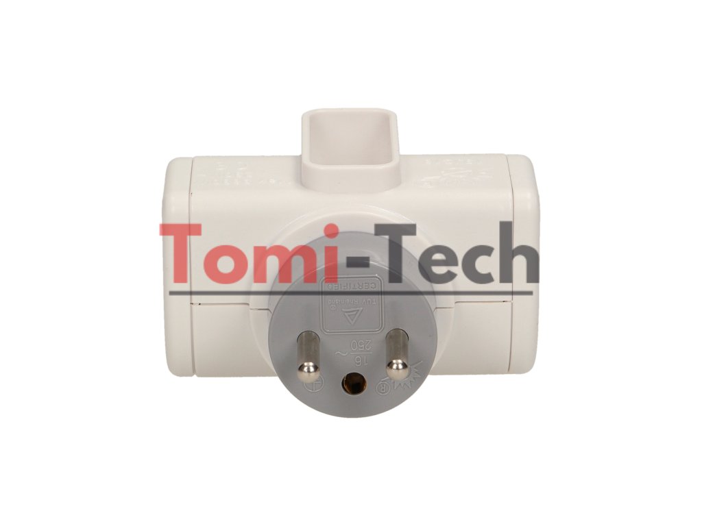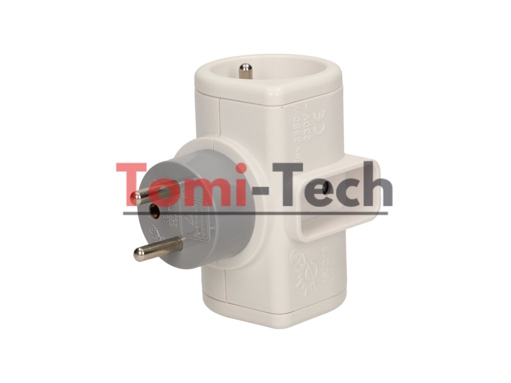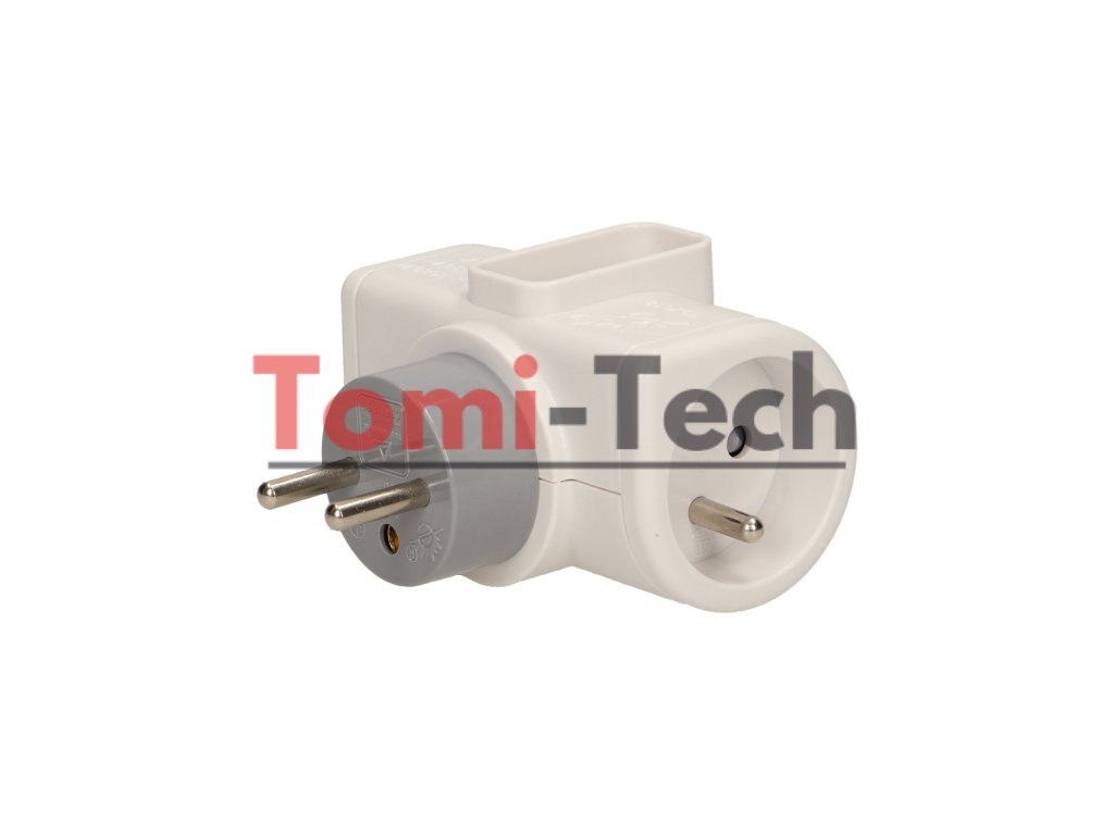 Otočný rozbočovač, 2 zásuvky 2P+Z, 1 zásuvka 2P/II
