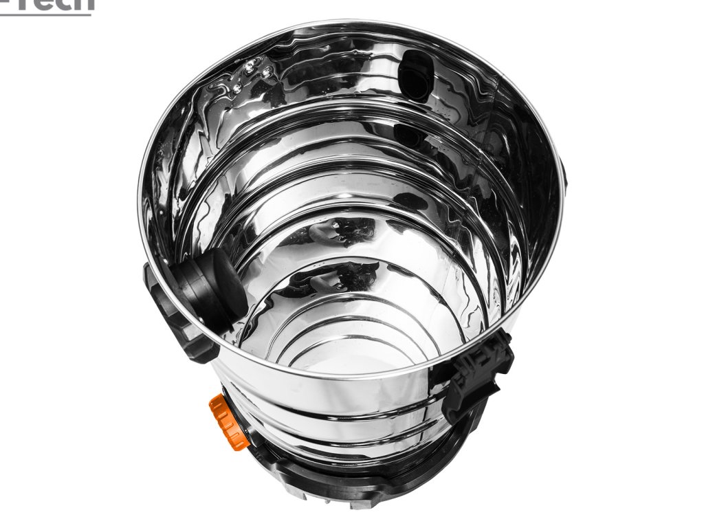 Vysávač 1600W 04-739, menovitý výkon motora 1600 W, maximálny výkon prídavného zariadenia 1800 W, celkový objem nádrže 35 l, dĺžka sacej hadice 1,5-4,5 m, priemer sacej hadice 35 mm, dĺžka napájacieho kábla 4 m, hmotnosť 7,5 kg (2160 l/min; 88 dB; 0,018 mbar; 18 kPA)Dodatočné parametre