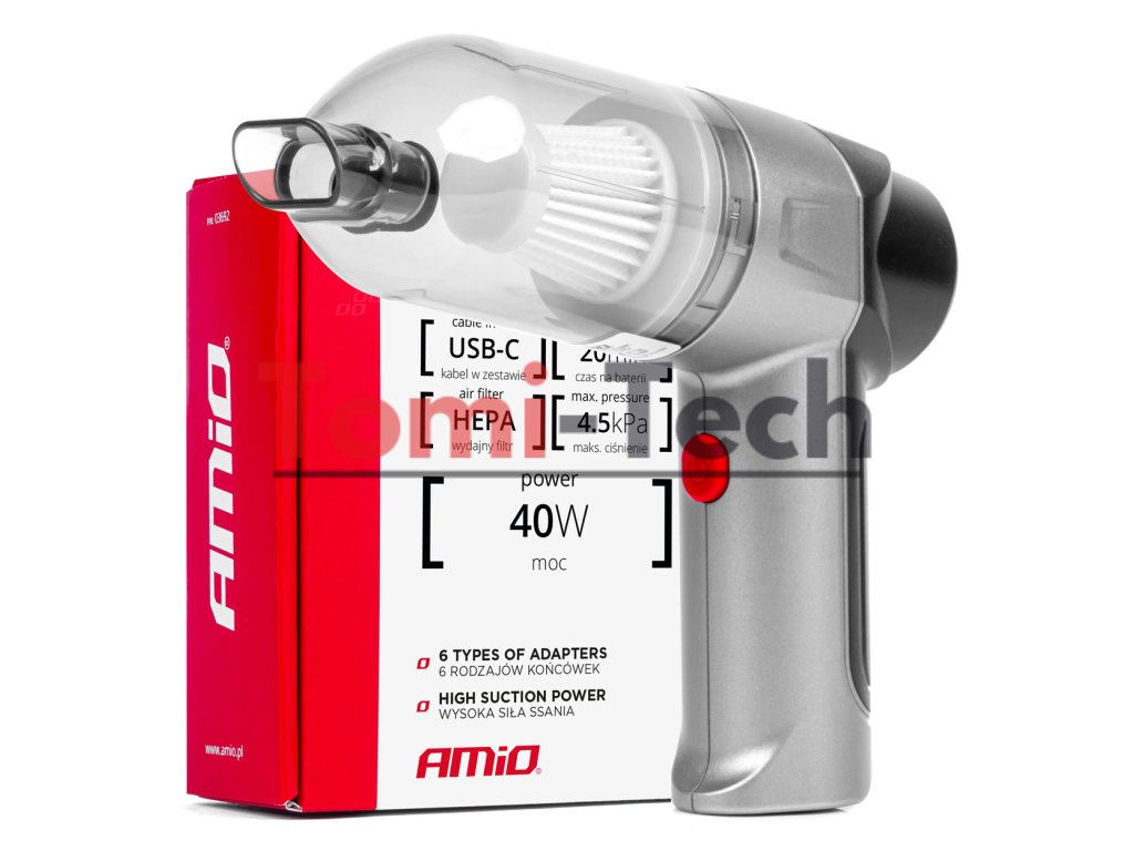 Predstavujeme kompaktný bezdrôtový vysávač do auta, perfektné riešenie na udržanie čistoty vo vašom aute, doma alebo v kancelárii. Jeho praktický dizajn a bezdrôtová funkčnosť umožňujú rýchle a pohodlné čistenie kdekoľvek ho potrebujete. Tento všestranný vysávač kombinuje výkon a mobilitu a ponúka spoľahlivý výkon v akomkoľvek prostredí. Vlastnosti: Čistota: Udržiava interiér vášho auta uprataný odstránením prachu, nečistôt a malých nečistôt, čím zlepšuje pohodlie jazdy a vylepšuje celkovú estetiku vášho vozidla. Multifunkčnosť: Ľahko si poradí s rôznymi typmi nečistôt, a to ako na čalúnení, tak aj v ťažko dostupných rohoch. Bezpečnosť: Eliminuje potenciálne nebezpečenstvo rozptylu prachu a jemných častíc, ktoré môžu ovplyvniť kvalitu ovzdušia vo vašom vozidle. Praktickosť: Kompaktný, ľahký a ľahko použiteľný, takže ho môžete mať vždy po ruke a použiť ho podľa potreby. Univerzálne nabíjanie: Nabíjanie cez kábel USB-C znamená, že vysávač je možné nabíjať kdekoľvek – ideálne na cesty, dlhšie výlety, doma alebo v kancelárii. Vybavený ľahko čistiteľným a umývateľným HEPA filtrom účinne zachytáva aj tie najmenšie prachové častice a alergény. Jeho nízka hladina hluku zaisťuje pohodlné a nerušené čistenie. Priehľadná nádoba na prach navyše umožňuje jednoduché sledovanie hladiny prachu a rýchle vyprázdňovanie, čo výrazne zjednodušuje každodenné používanie. Tento vysávač je dokonalou kombináciou účinnosti, pohodlia a moderných technológií. Tento bezdrôtový vysávač do auta vylepšuje svoj filtračný systém a využíva najnovšiu technológiu filtrov s vysokou hustotou, ktoré sú odnímateľné a umývateľné, silnejšie a odolnejšie ako štandardné filtre. Dvojstupňový filtračný systém zabraňuje úniku prachu zo zariadenia. Vynikajúci výkon HEPA filtra odstraňuje 99,97 % jemných častíc. TECHNICKÉ ŠPECIFIKÁCIE Materiál: plast Vstavaná batéria: 2x 2000mAh Nabíjanie cez USB-C: áno Napájanie: bezdrôtové Doba nabíjania: približne 3 hodiny Prevádzková doba: približne 20 minút Výkon: 40W Vysávanie: HEPA filter 4,5kPa Počet dodávaných nástavcov: 6 Nástavce: Štandardný sací nadstavec: Ideálny na každodenné vysávanie interiéru auta. Vďaka svojmu univerzálnemu tvaru funguje perfektne na sedadlách, kobercoch a na ťažko dostupných miestach. Zaisťuje účinné odstránenie prachu, omrviniek a malých nečistôt. Nadstavec s kefou na čalúnenie: Navrhnutý špeciálne na čistenie čalúnenia a chúlostivých povrchov. Mäkké štetiny kefy jemne, ale účinne odstraňujú prach a nečistoty zo sedadiel, dverových panelov a iných čalúnených prvkov interiéru auta bez poškodenia materiálov. Nadstavce na fúkanie vzduchu a vysávanie nečistôt: Presný nadstavec na fúkanie vzduchu: Ideálny na odstraňovanie nečistôt z ťažko dostupných miest, ako sú medzery medzi sedadlami, vetracie otvory alebo okolo radiacej páky. Úzka tryska umožňuje presné ovládanie prúdenia vzduchu, čo umožňuje efektívne vyfúkanie nečistôt. Nadstavec na intenzívne fúkanie vzduchu: Navrhnutý pre úlohy vyžadujúce silnejšie prúdenie vzduchu. Ideálny na odstraňovanie väčších nečistôt, ako sú listy alebo piesok, z oblastí, ako sú koberce alebo podlahy auta. Zaisťuje rýchle a efektívne čistenie interiéru vozidla. Nadstavec na odsávanie vzduchu z vysávacieho vrecka: Nadstavec na odsávanie vzduchu: Špecializovaný nadstavec na odsávanie vzduchu z vysávacích vreciek. Ideálny na uloženie oblečenia, posteľnej bielizne alebo iných predmetov, ktoré vyžadujú zhutnenie. Zaisťuje rýchle a jednoduché odsávanie vzduchu, čím šetrí miesto počas skladovania. Náš vysávač vyniká nielen účinným čistením, ale aj praktickou funkciou nafukovania, ktorá je ideálna na rýchle nafukovanie predmetov, ako sú matrace, lopty alebo nafukovacie hračky. Pokyny na prevádzku batérií a bezpečnostné pokyny pre produkty AMiODodatočné parametre