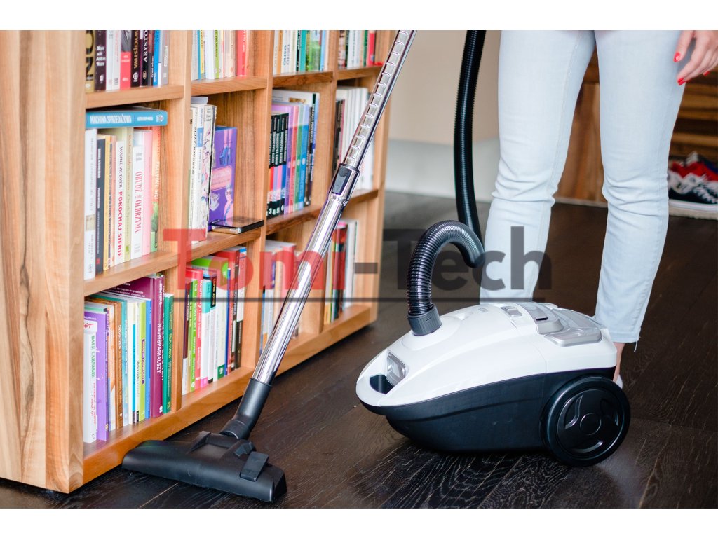 ECO WHITE 700 sa neuveriteľne pohodlne používa a skladuje. Zariadenie má odolné kolieska, ergonomickú rukoväť pre jednoduché prenášanie, funkciu automatického navíjania kábla a možnosť skladovania vertikálne alebo horizontálne. Okrem toho je vysávač vybavený priestranným 3-litrovým vreckom, ktorého vstavaný indikátor vás bude informovať o jeho naplnení.