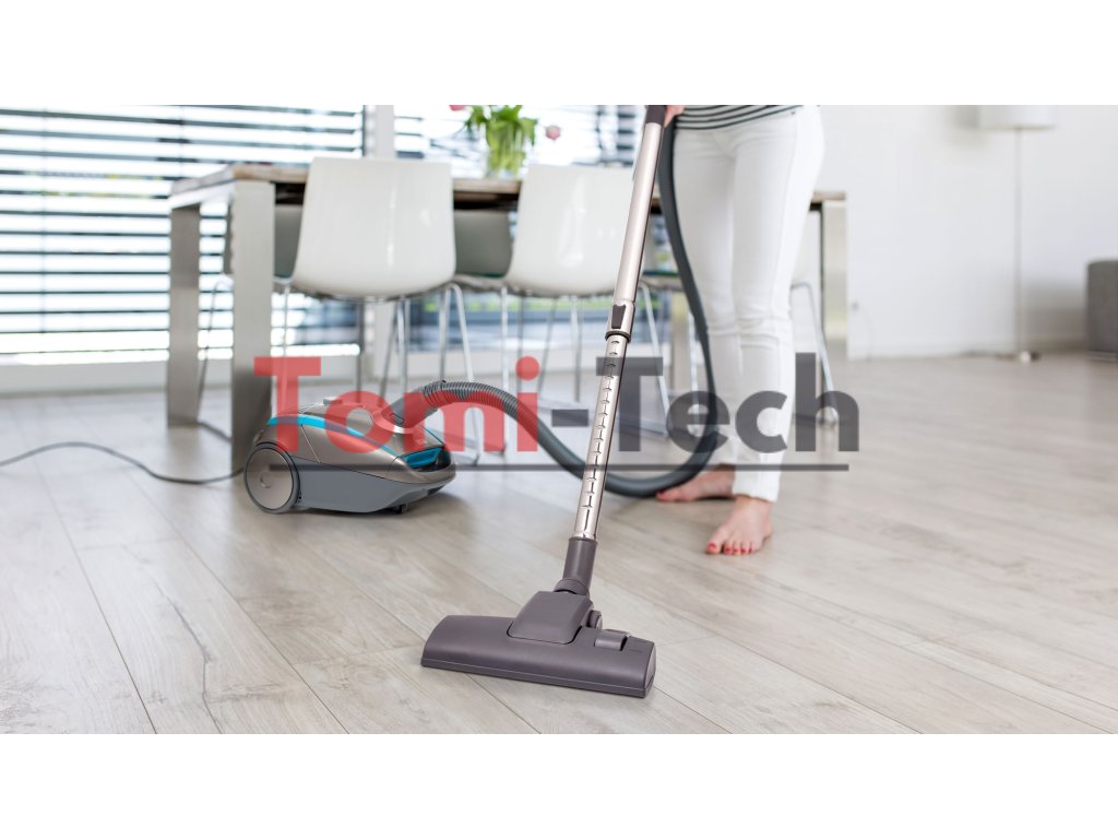 Gumové kolieska vysávača Teesa chránia vaše podlahy pred poškriabaním a dlhý 5-metrový kábel zaručujúci 8-metrový prevádzkový dosah vám umožňuje čistiť väčšie plochy bez nutnosti odpájania zo siete.