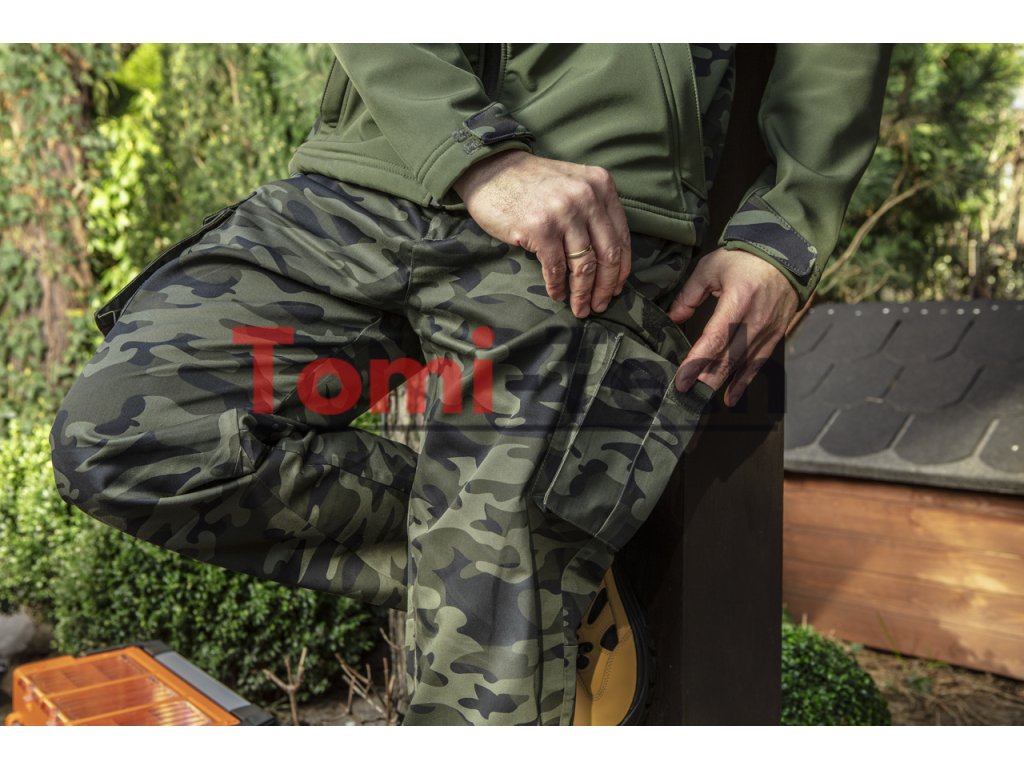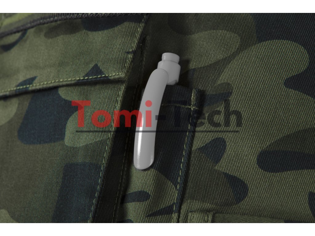 Pracovné montérky s maskáčovým vzorom, veľkosť XL, 60 % bavlna, 40 % polyester, 255 g/m2, multifunkčné vrecká, vrecká na suchý zips, vrecko na preukaz totožnosti, vrecko na pero, elastický pás, elastické traky, vložka na preukaz totožnosti, jedinečný maskáčový vzor, certifikácia CEDodatočné parametre