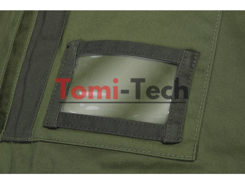 Pracovné montérky s maskáčovým vzorom olivovej farby, veľkosť XXL, 60 % bavlna, 40 % polyester, 255 g/m2, multifunkčné vrecká, vrecká na suchý zips, vrecko na preukaz totožnosti, vrecko na pero, elastický pás, elastické traky, vložka na preukaz totožnosti, certifikácia CEDodatočné parametre