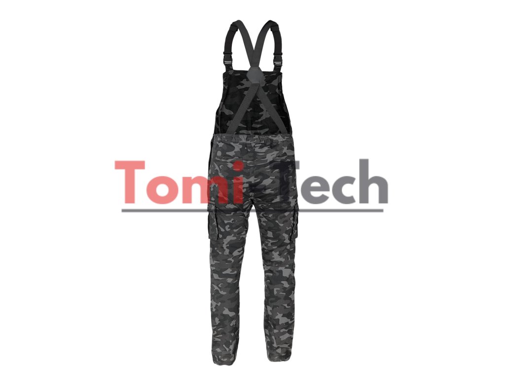 Pracovné montérky CAMO Urban, veľkosť L, zloženie materiálu: 60 % bavlna, 37 % polyester, 3 % elastan, gramáž: 255 g/m2, typ látky: keper, multifunkčné vrecká, vrecká na suchý zips, vrecko na preukaz totožnosti, vrecko na pero, elastický pás, nastaviteľné tkané popruhy, vložka na preukaz totožnosti, jedinečný maskáčový vzor, certifikát CEDodatočné parametre