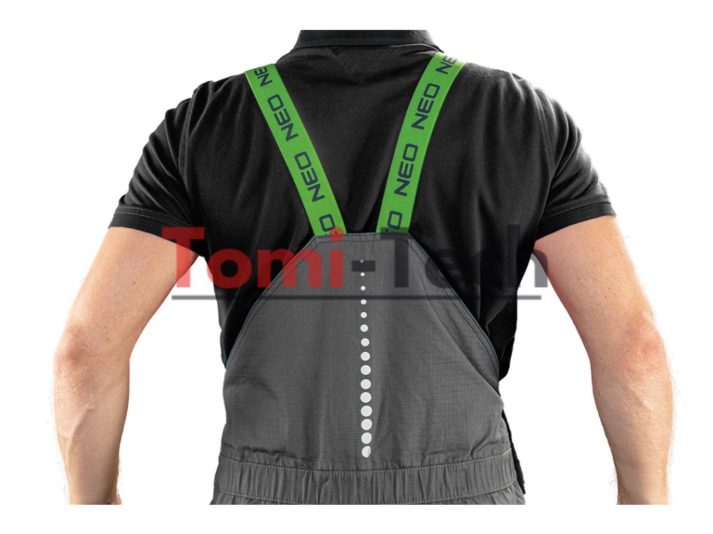 PRÉMIOVÉ pracovné montérky, 100 % bavlna, ripstopová tkanina, gramáž 210 g/m2, výstuhy z Cordury, držiak na identifikačný odznak - možno uložiť do vrecka, vysoké sedlo v chrbte, vrecko na chrániče kolien, elastický panel z Cordury Stretch v rozkroku pre väčšie pohodlie, výstuhy kolien z Cordury, reflexné potlače na nohaviciach a sedle, elastické traky, elastický pás, tvarované kolená, vnútorná menovka, jedinečný vlastný dizajn, certifikát CE, veľkosť SDodatočné parametre