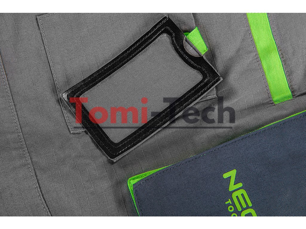 PRÉMIOVÉ pracovné montérky, 100 % bavlna, ripstopová tkanina, gramáž 210 g/m2, výstuhy z Cordury, držiak na identifikačný odznak - možno uložiť do vrecka, vysoké sedlo v chrbte, vrecko na chrániče kolien, elastický panel z Cordury Stretch v rozkroku pre väčšie pohodlie, výstuhy kolien z Cordury, reflexné potlače na nohaviciach a sedle, elastické traky, elastický pás, tvarované kolená, vnútorná menovka, jedinečný vlastný dizajn, certifikát CE, veľkosť XLDodatočné parametre
