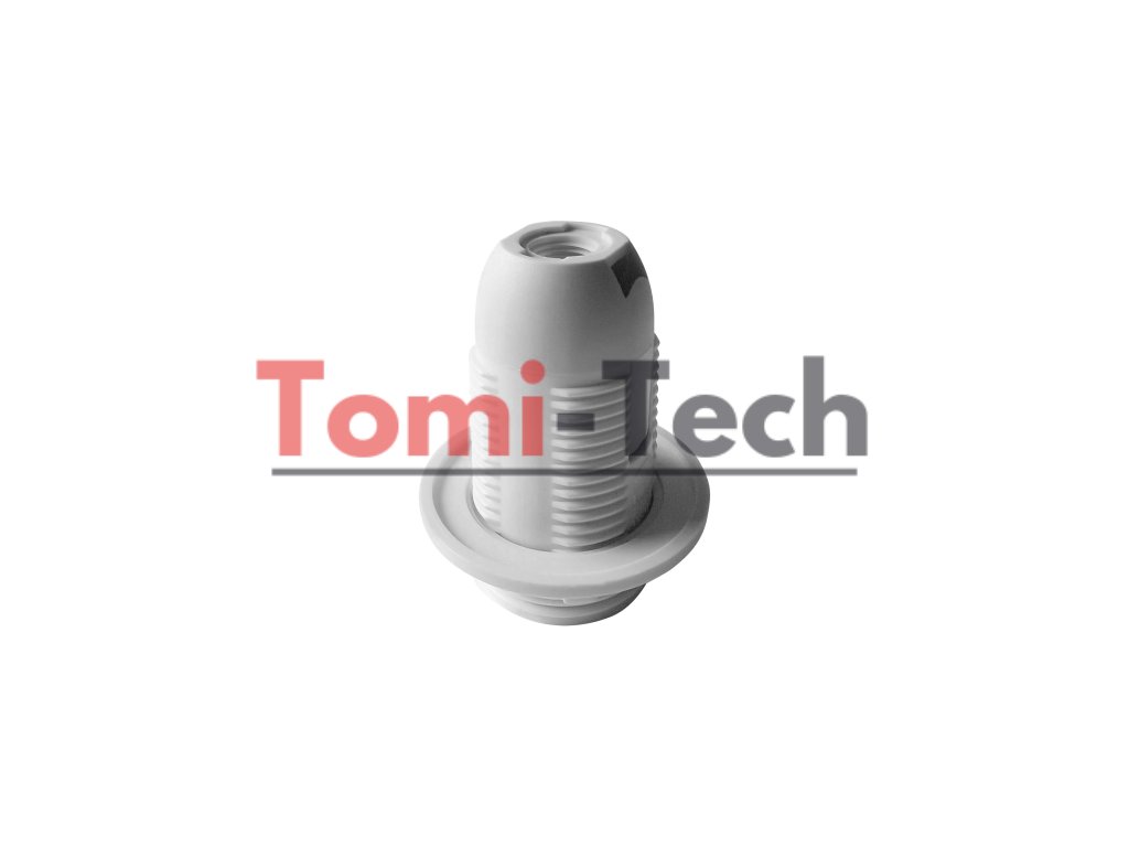 Termoplastická objímka na lampu s plastovým golierom a zakončená závitom pre žiarovku s päticou E14 (malý závit). Farba: biela.Dodatočné parametre