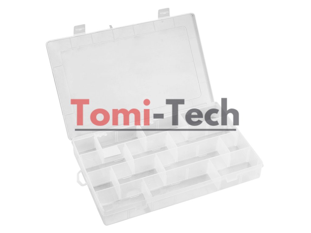 Organizér 35 x 22,8 x 4,9 cm, vyrobený z plastu, má 14 nastaviteľných priehradiek, plastové zapínanieDodatočné parametre