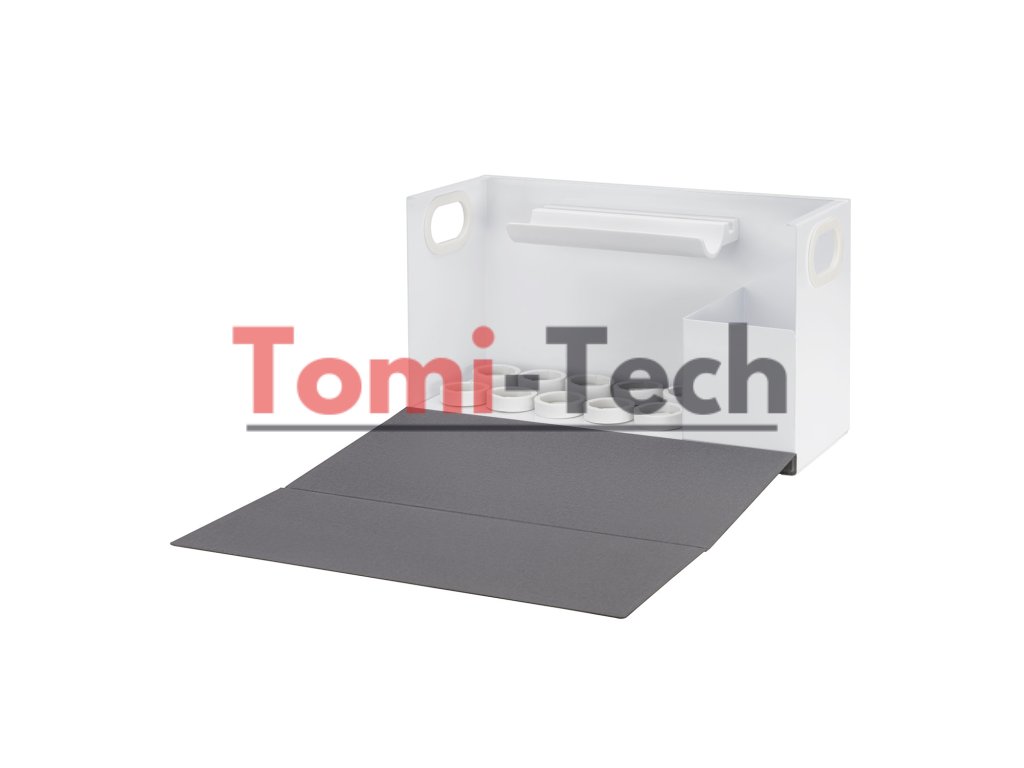 Je vybavený držiakom zariadenia a 8 magnetickými základňami pre ľahký prístup k jednotlivým komponentom súpravy.