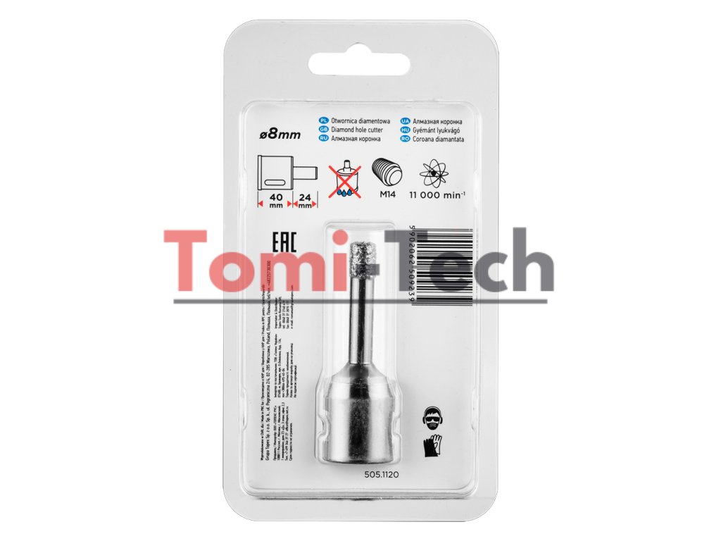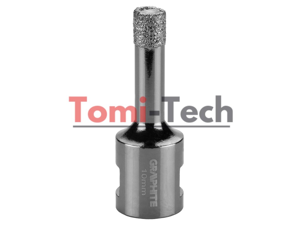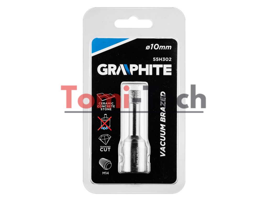 Diamantová dierová píla, priemer 10 mm, pracovná dĺžka 40 mm, celková dĺžka 60 mm, závit M14, vákuovo spájkovaná, na suché použitie, plnená parafínom, 11000 ot./min.Dodatočné parametre