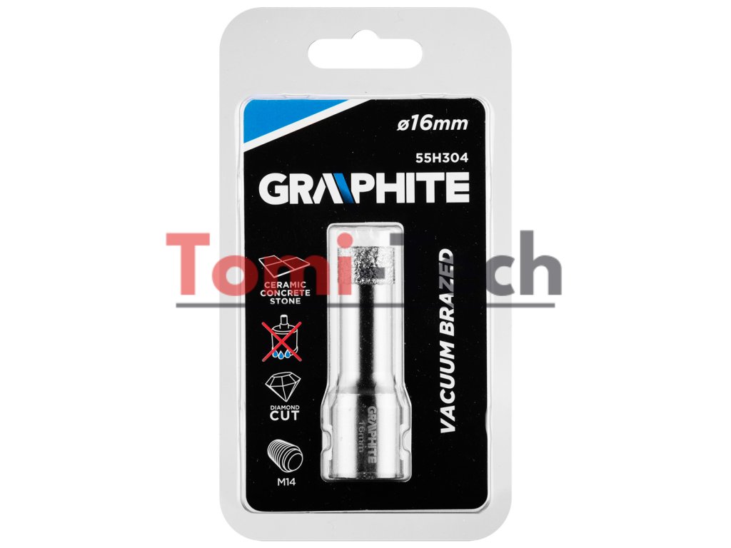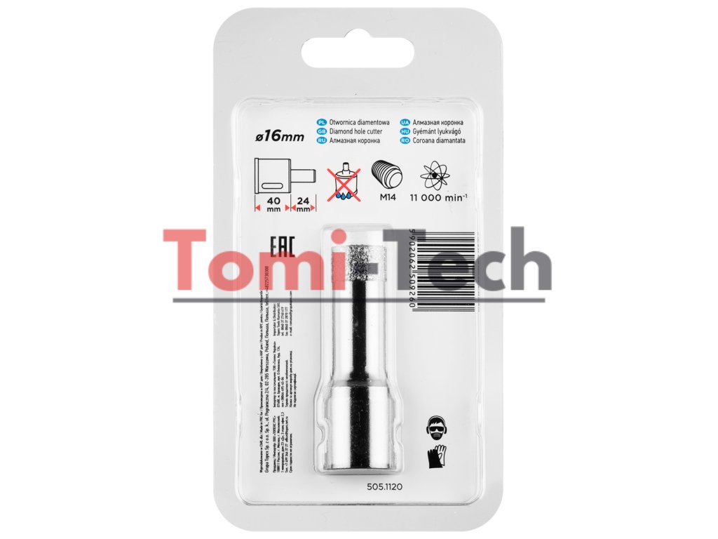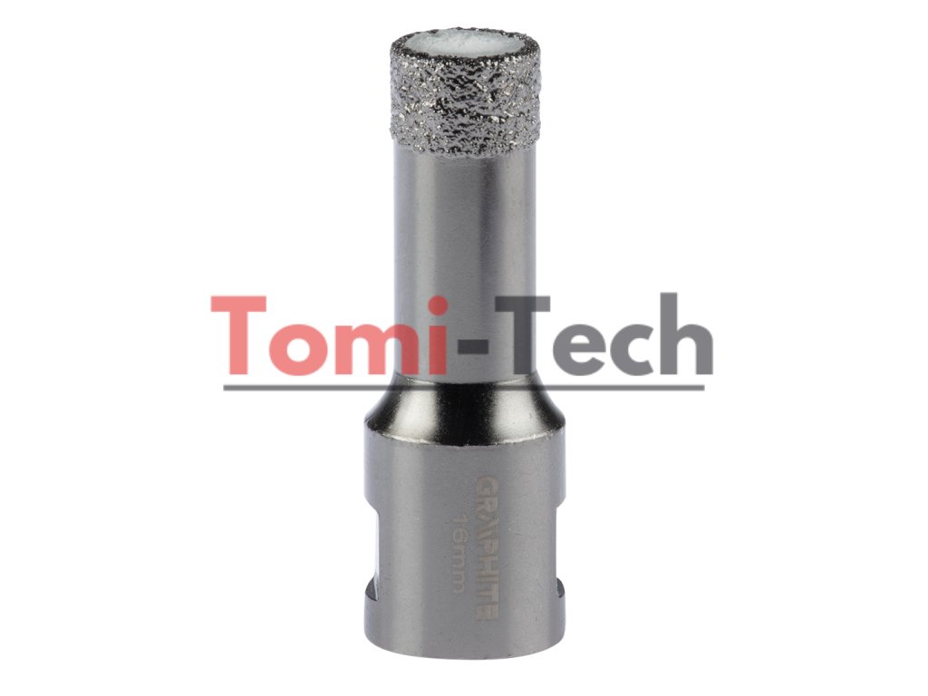 Diamantová dierová píla, priemer 16 mm, pracovná dĺžka 40 mm, celková dĺžka 60 mm, závit M14, vákuovo spájkovaná, na suché použitie, plnená parafínom, 11 000 ot./min.Dodatočné parametre