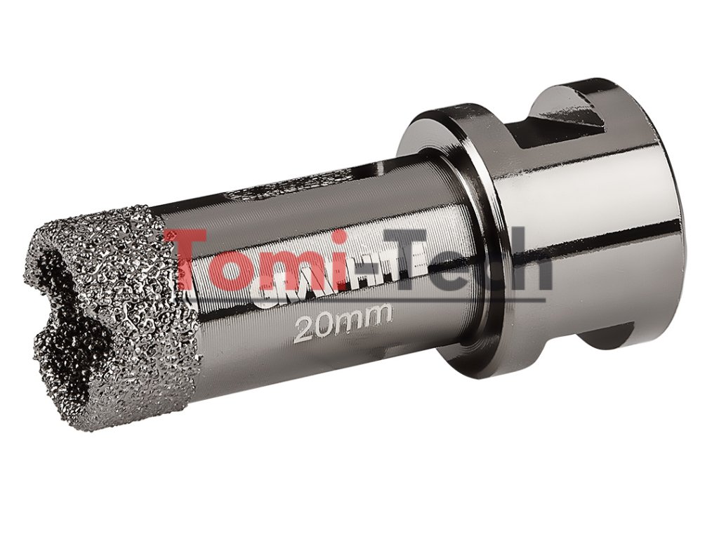 Diamantová dierová píla, priemer 20 mm, pracovná dĺžka 40 mm, celková dĺžka 60 mm, závit M14, vákuovo spájkovaná, pre suchú prevádzku, 11000 ot./min.Dodatočné parametre