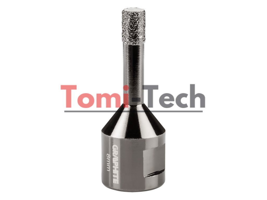 Diamantová dierová píla, priemer 8 mm, pracovná dĺžka 40 mm, celková dĺžka 60 mm, závit M14, vákuovo spájkovaná, na suché použitie, plnená parafínom, 11 000 ot./min.Dodatočné parametre