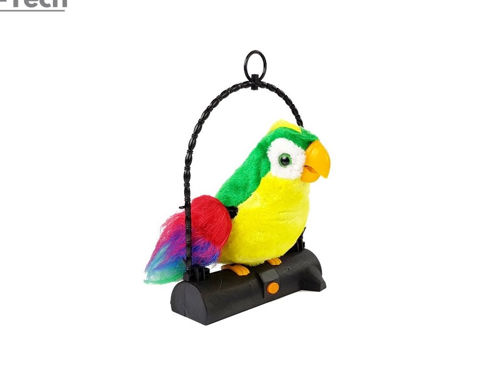 Ako začať hrať s farebným papagájom? Je to veľmi jednoduché! Stlačte tlačidlo umiestnené v strede konára, na ktorom je toto ukecané zvieratko umiestnené, a keď sa rozsvieti LED svetlo,hovorte alebo spievajte. Po niekoľkých sekundách papagáj dvakrát zopakuje vaše slová, čo bude určite veľmi zábavné. Ak chcete papagája naučiť viac slov, stlačte tlačidlo znova.Interaktívna hračka sa automaticky vypne po približne dvanástich sekundách, počas ktorých sa nevyslovia žiadne slová. Veselú imitáciu budú sprevádzaťpohyby krídel? Presvedčte sa sami ešte dnes.
