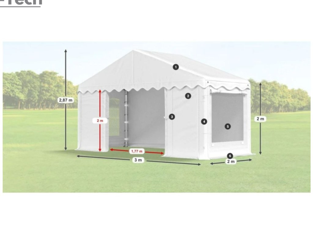 Pártystan v rozmere 3x2m s výškou 2m s moskytierkou je výborný na rôzne akcie, alebo festivaly. Hrubá oceľová konštrukcia zabezpečuje odolnosť proti poveternostným podmienkam, stan je vyrobený z ľahkého materiálu, ktorý je veľmi odolný voči UV žiareniu, vode a plesniam. Partystan je skvelým riešením pre všetkých, ktorí chcú vytvoriť dokonalú atmosféru pre svoje párty, bez ohľadu na poveternostné podmienky. Tieto veľké stany sú navrhnuté tak, aby poskytovali dostatok priestoru pre hostí a zároveň ich chránili pred dažďom, vetrom alebo silným slnkom.