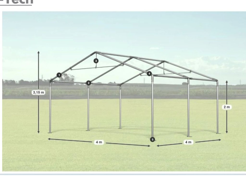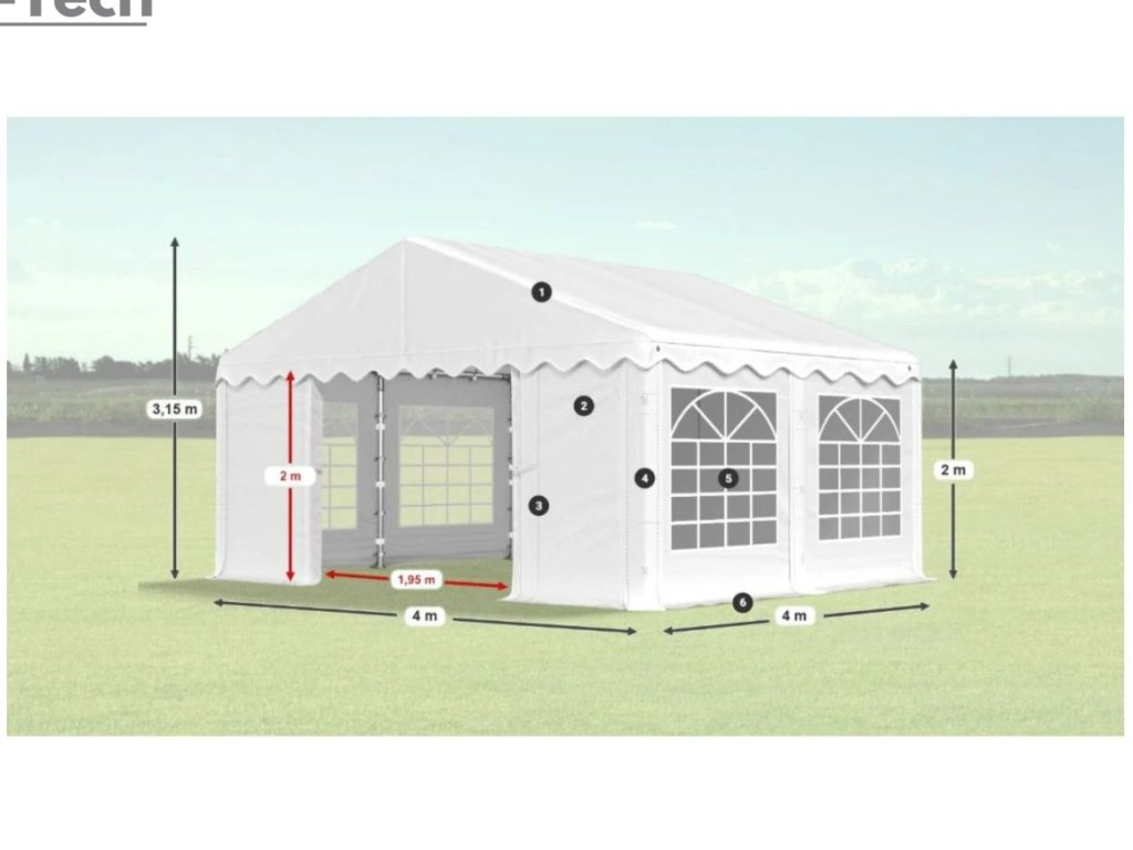 Pártystan v rozmere 4x4m s výškou 2m je výborný na rôzne akcie, alebo festivaly. Hrubá oceľová konštrukcia zabezpečuje odolnosť proti poveternostným podmienkam, stan je vyrobený z ľahkého materiálu, ktorý je veľmi odolný voči UV žiareniu, vode a plesniam. Partystan je skvelým riešením pre všetkých, ktorí chcú vytvoriť dokonalú atmosféru pre svoje párty, bez ohľadu na poveternostné podmienky. Tieto veľké stany sú navrhnuté tak, aby poskytovali dostatok priestoru pre hostí a zároveň ich chránili pred dažďom, vetrom alebo silným slnkom.