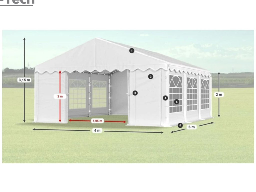 Pártystan v rozmere 4x6m s výškou 2m je výborný na rôzne akcie, alebo festivaly. Hrubá oceľová konštrukcia zabezpečuje odolnosť proti poveternostným podmienkam, stan je vyrobený z ľahkého materiálu, ktorý je veľmi odolný voči UV žiareniu, vode a plesniam. Partystan je skvelým riešením pre všetkých, ktorí chcú vytvoriť dokonalú atmosféru pre svoje párty, bez ohľadu na poveternostné podmienky. Tieto veľké stany sú navrhnuté tak, aby poskytovali dostatok priestoru pre hostí a zároveň ich chránili pred dažďom, vetrom alebo silným slnkom.