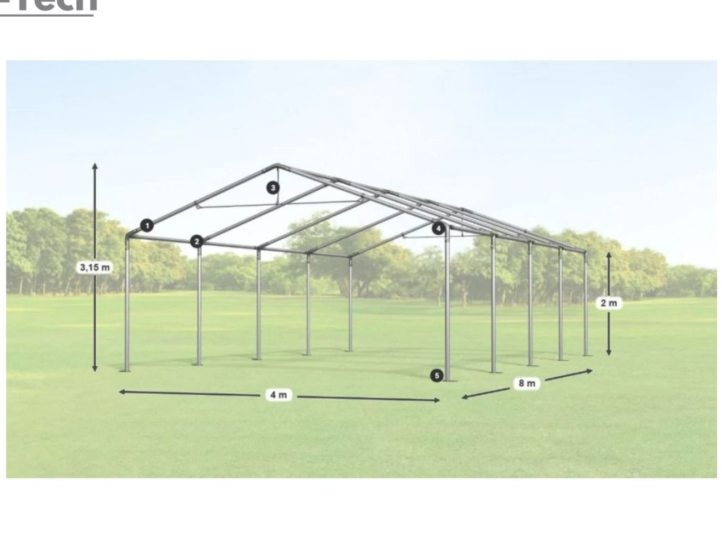 Pártystan v rozmere 4x8m s výškou 2m s moskytierkou je výborný na rôzne akcie, alebo festivaly. Hrubá oceľová konštrukcia zabezpečuje odolnosť proti poveternostným podmienkam, stan je vyrobený z ľahkého materiálu, ktorý je veľmi odolný voči UV žiareniu, vode a plesniam. Partystan je skvelým riešením pre všetkých, ktorí chcú vytvoriť dokonalú atmosféru pre svoje párty, bez ohľadu na poveternostné podmienky. Tieto veľké stany sú navrhnuté tak, aby poskytovali dostatok priestoru pre hostí a zároveň ich chránili pred dažďom, vetrom alebo silným slnkom.