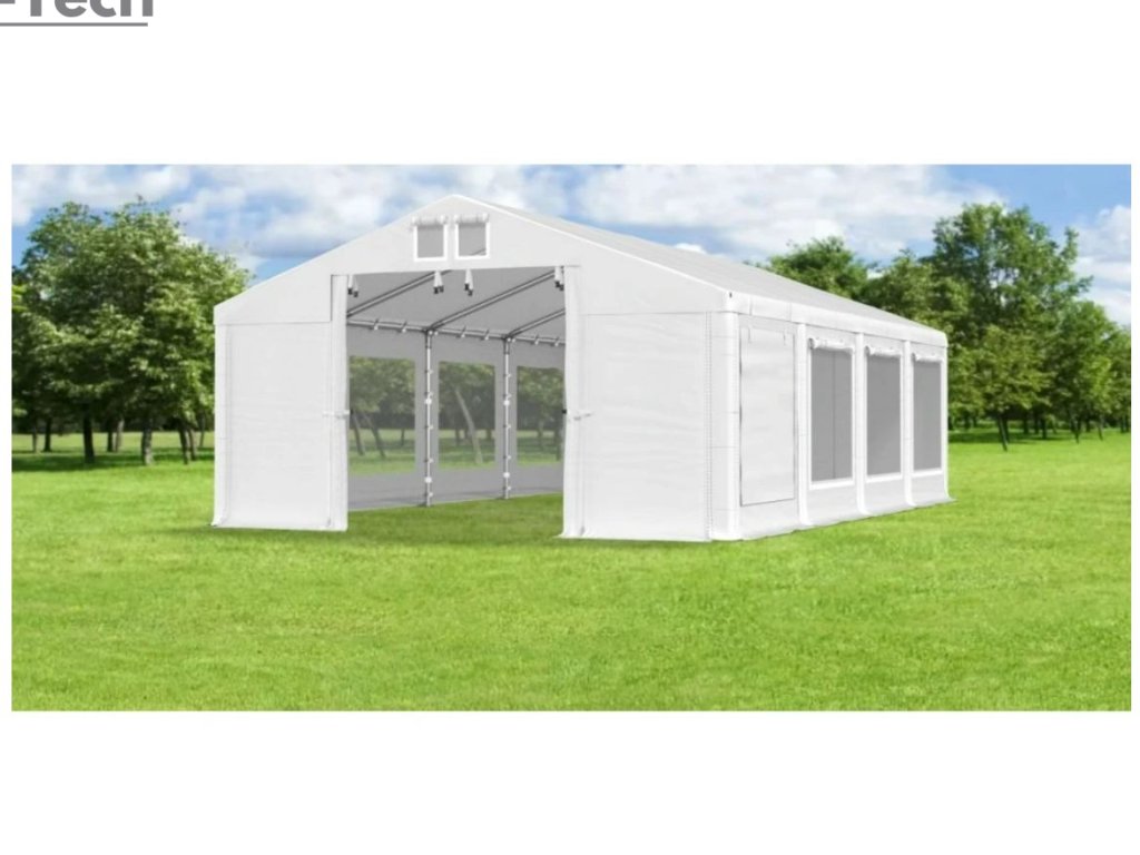 Pártystan v rozmere 4x8m s výškou 2m, opláštenie 560g/m2 s moskytierkou je výborný na rôzne akcie, alebo festivaly. Hrubá oceľová konštrukcia zabezpečuje odolnosť proti poveternostným podmienkam, stan je vyrobený z ľahkého materiálu, ktorý je veľmi odolný voči UV žiareniu, vode a plesniam. Partystan je skvelým riešením pre všetkých, ktorí chcú vytvoriť dokonalú atmosféru pre svoje párty, bez ohľadu na poveternostné podmienky. Tieto veľké stany sú navrhnuté tak, aby poskytovali dostatok priestoru pre hostí a zároveň ich chránili pred dažďom, vetrom alebo silným slnkom.