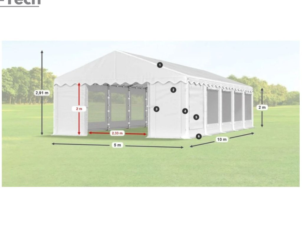 Pártystan v rozmere 5x10m s výškou 2m s moskytierkou je výborný na rôzne akcie, alebo festivaly. Hrubá oceľová konštrukcia zabezpečuje odolnosť proti poveternostným podmienkam, stan je vyrobený z ľahkého materiálu, ktorý je veľmi odolný voči UV žiareniu, vode a plesniam. Partystan je skvelým riešením pre všetkých, ktorí chcú vytvoriť dokonalú atmosféru pre svoje párty, bez ohľadu na poveternostné podmienky. Tieto veľké stany sú navrhnuté tak, aby poskytovali dostatok priestoru pre hostí a zároveň ich chránili pred dažďom, vetrom alebo silným slnkom.