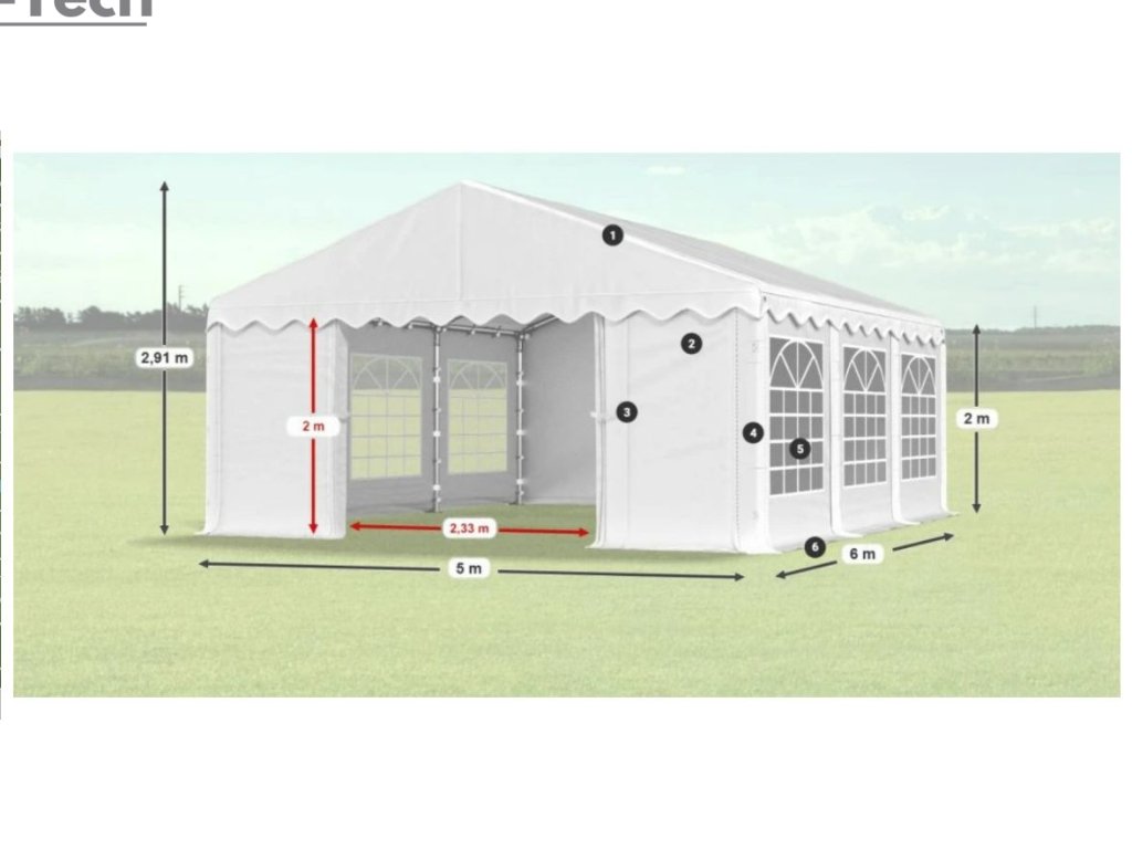 Pártystan v rozmere 5x6m s výškou 2m je výborný na rôzne akcie, alebo festivaly. Hrubá oceľová konštrukcia zabezpečuje odolnosť proti poveternostným podmienkam, stan je vyrobený z ľahkého materiálu, ktorý je veľmi odolný voči UV žiareniu, vode a plesniam. Partystan je skvelým riešením pre všetkých, ktorí chcú vytvoriť dokonalú atmosféru pre svoje párty, bez ohľadu na poveternostné podmienky. Tieto veľké stany sú navrhnuté tak, aby poskytovali dostatok priestoru pre hostí a zároveň ich chránili pred dažďom, vetrom alebo silným slnkom.