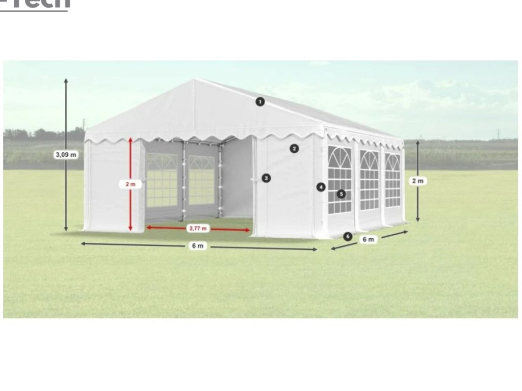 Pártystan v rozmere 6x6m s výškou 2m je výborný na rôzne akcie, alebo festivaly. Hrubá oceľová konštrukcia zabezpečuje odolnosť proti poveternostným podmienkam, stan je vyrobený z ľahkého materiálu, ktorý je veľmi odolný voči UV žiareniu, vode a plesniam. Partystan je skvelým riešením pre všetkých, ktorí chcú vytvoriť dokonalú atmosféru pre svoje párty, bez ohľadu na poveternostné podmienky. Tieto veľké stany sú navrhnuté tak, aby poskytovali dostatok priestoru pre hostí a zároveň ich chránili pred dažďom, vetrom alebo silným slnkom.