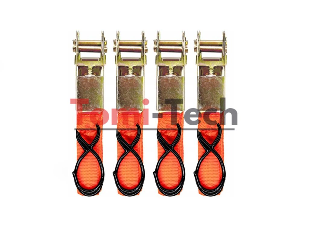 Sada dvojdielnych popruhov s háčikom a napínačom (račňa). Ideálne na držanie a zaistenie nákladu, ako aj premiestňovanie nábytku. Ideálne na prepravu objemného tovaru. Extra pevné polyesterové popruhy, kovová račňová pracka, oceľový háčik potiahnutý plastom. Sada obsahuje: 4 popruhy s háčikmi, 4 slučky s napínačmi. VÝHODY PRODUKTU: Zabezpečenie nákladu počas prepravy. Protichodné sily pôsobiace na bremená počas pohybu. Zníženie strát spôsobených presúvaním zaťaženia. Možno použiť na prívesy, prívesy a ako popruhy na uťahovanie batožiny. ŠPECIFIKÁCIE: Šírka popruhu: 25 mm, Dĺžka popruhu: 4,5 m, 4 popruhy s háčikmi, 4 slučky s napínačmi. Originál balenie.Dodatočné parametre