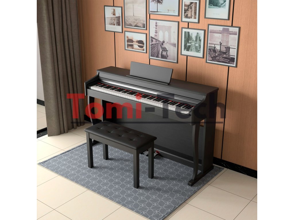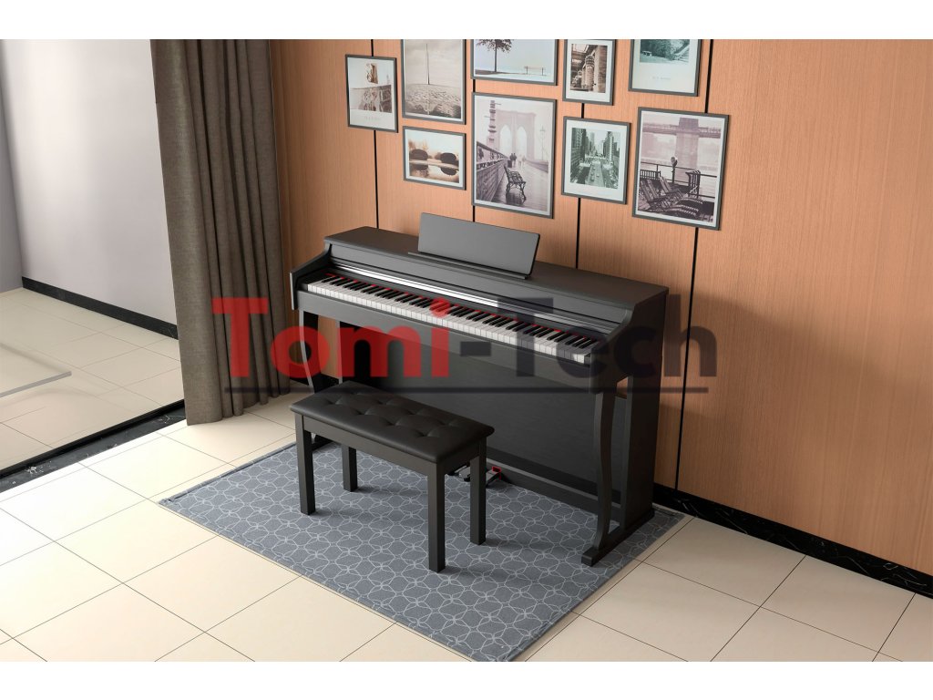 Elektrický klavír KMDP-155 je vybavený kladivkovou mechanikou a vám dá pocit, akoby ste hrali na tradičnom akustickom klavíri. Jeho 88 plne vážených kláves vám poskytuje plný tónový rozsah. Kladivkový mechanizmus zase poskytuje autentický zážitok s ťažšími klávesmi v nižších registroch a ľahšími vo vyšších, čo výrazne zlepšuje kvalitu hry.