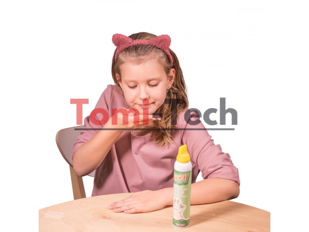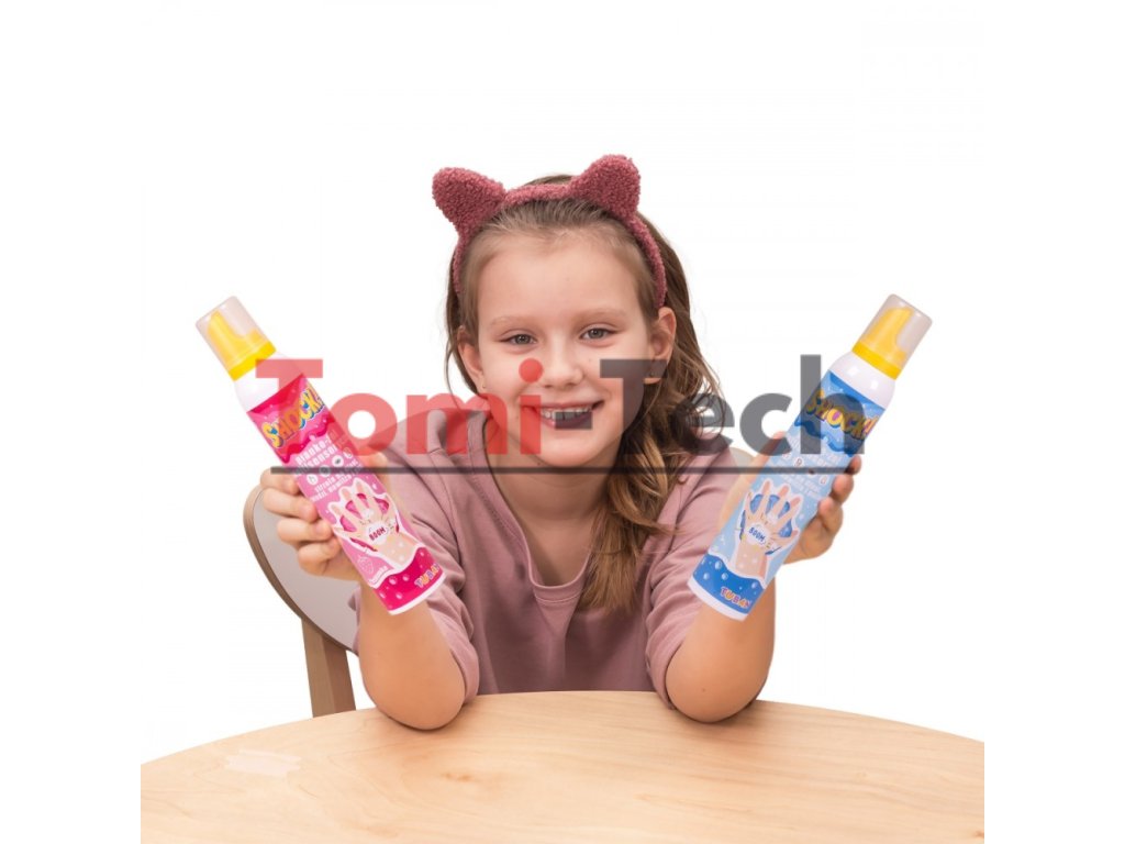 - Stimuluje zmysly (po nanesení peny na ruky cítite vôňu jahôd alebo jablka, cítite príjemný chlad, počujete a cítite jemné praskanie peny medzi prstami)