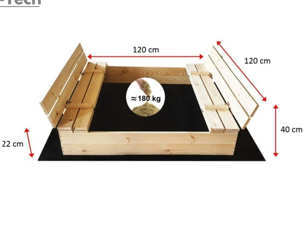 - Rozmery postaveného pieskoviska cca: 120 x 120 x 22 cm